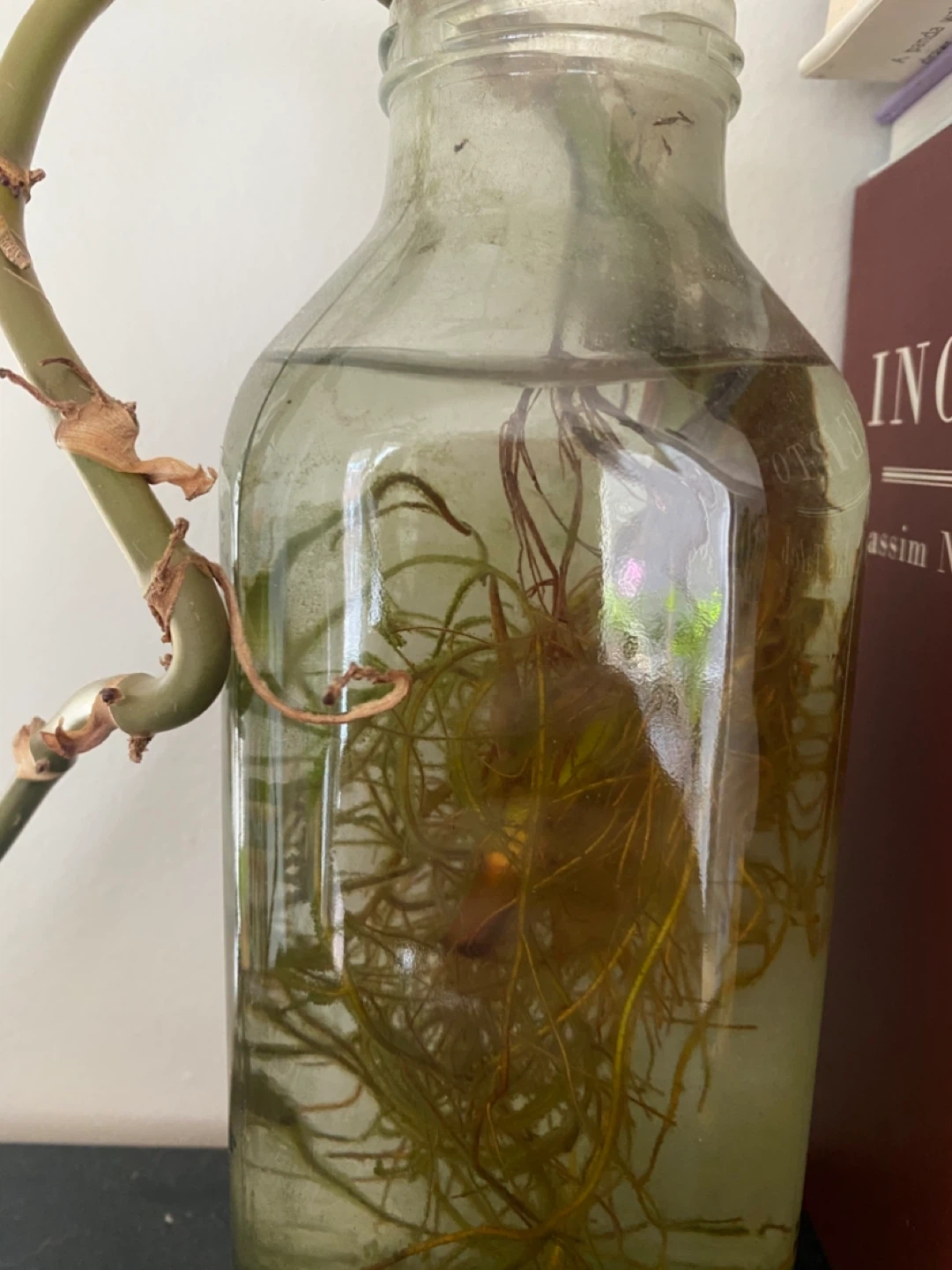 Well rooted Arrowhead cutting growing in a glass jar. It's a great piece to add some greenery to your space. The plant π± has a well-established root system. It's ready to be potted or kept in water!