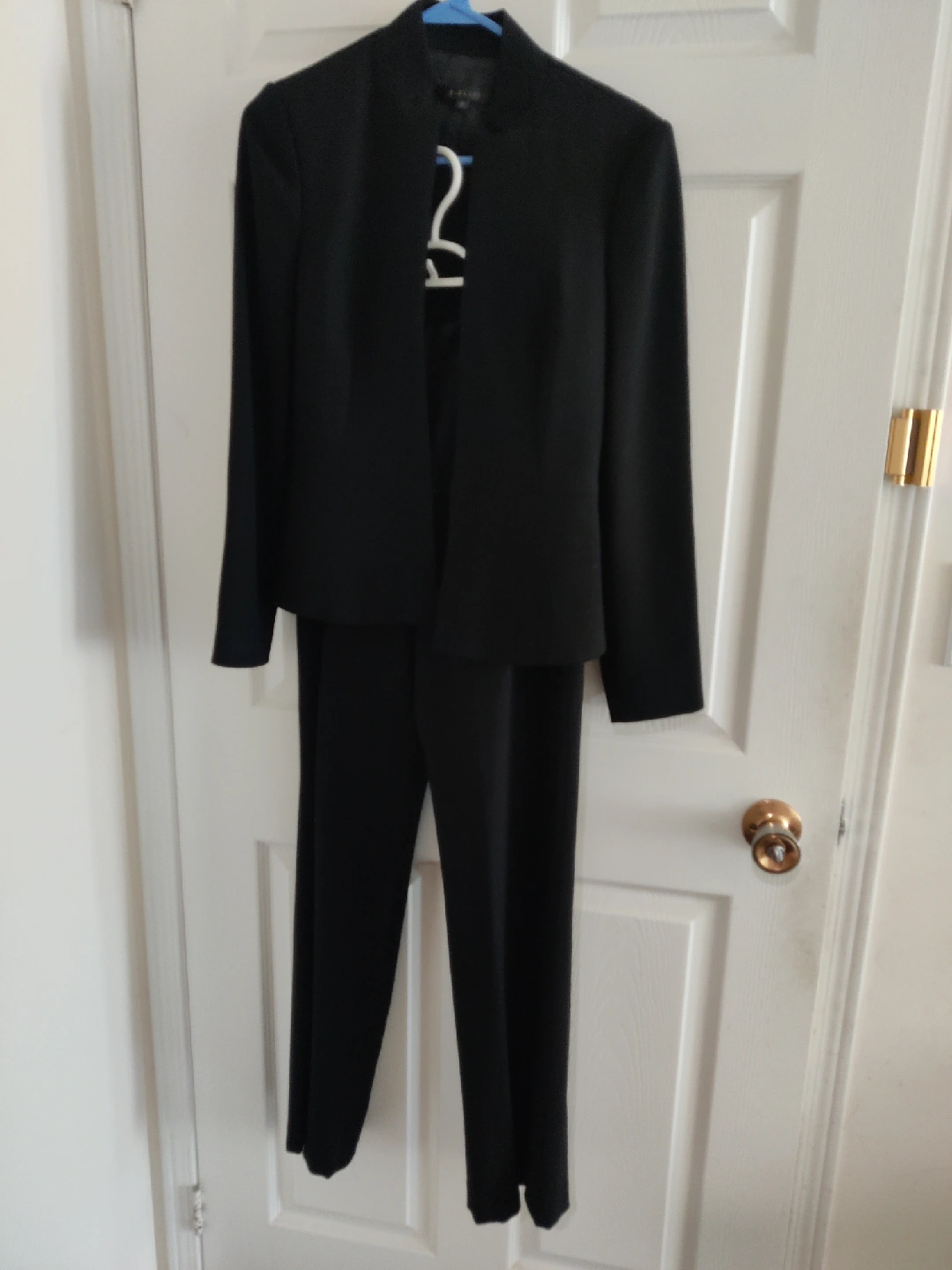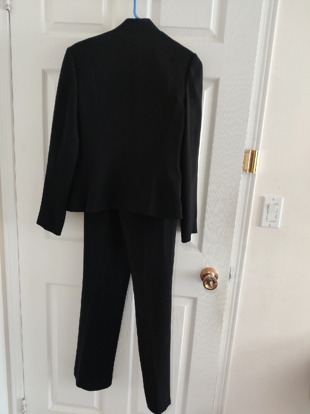 Classic black pant suit from Talbots, perfect for work or a special occasion! The jacket is a size 4 and the pants are also a size 4. It's in great condition and ready for a new home! From a no pet non smoking home Meetup near Finch and Yonge Cash only Please check other listings on my profile :)