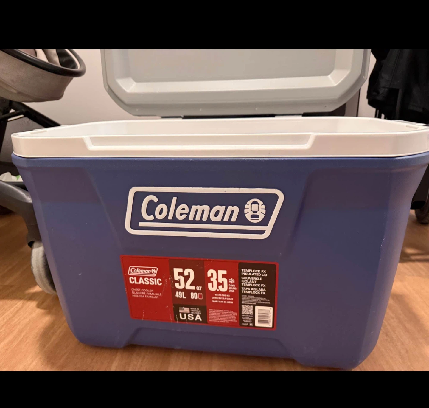 1 / 11 / 1Buy & SellColeman Classic 52 Qt Chest CoolerColeman Classic 52 Qt Chest Cooler$50Coleman Classic chest cooler in blue. It's 52 quart capacity, which is 49L. Features a Templock FX insulated lid. Keeps ice for up to 3.5 days.ConditionLike newWHERE TO MEETThe quayView MapSELLERverifiedAlondraEntertainment District1105 reviews0 chats·0 favorites·19 viewsSEND CHAT TO SELLERHi Alondra! I’m interested in your listing.Hi Alondra! I’m interested in your listing.Get the Karrot app to chatSign In to chat