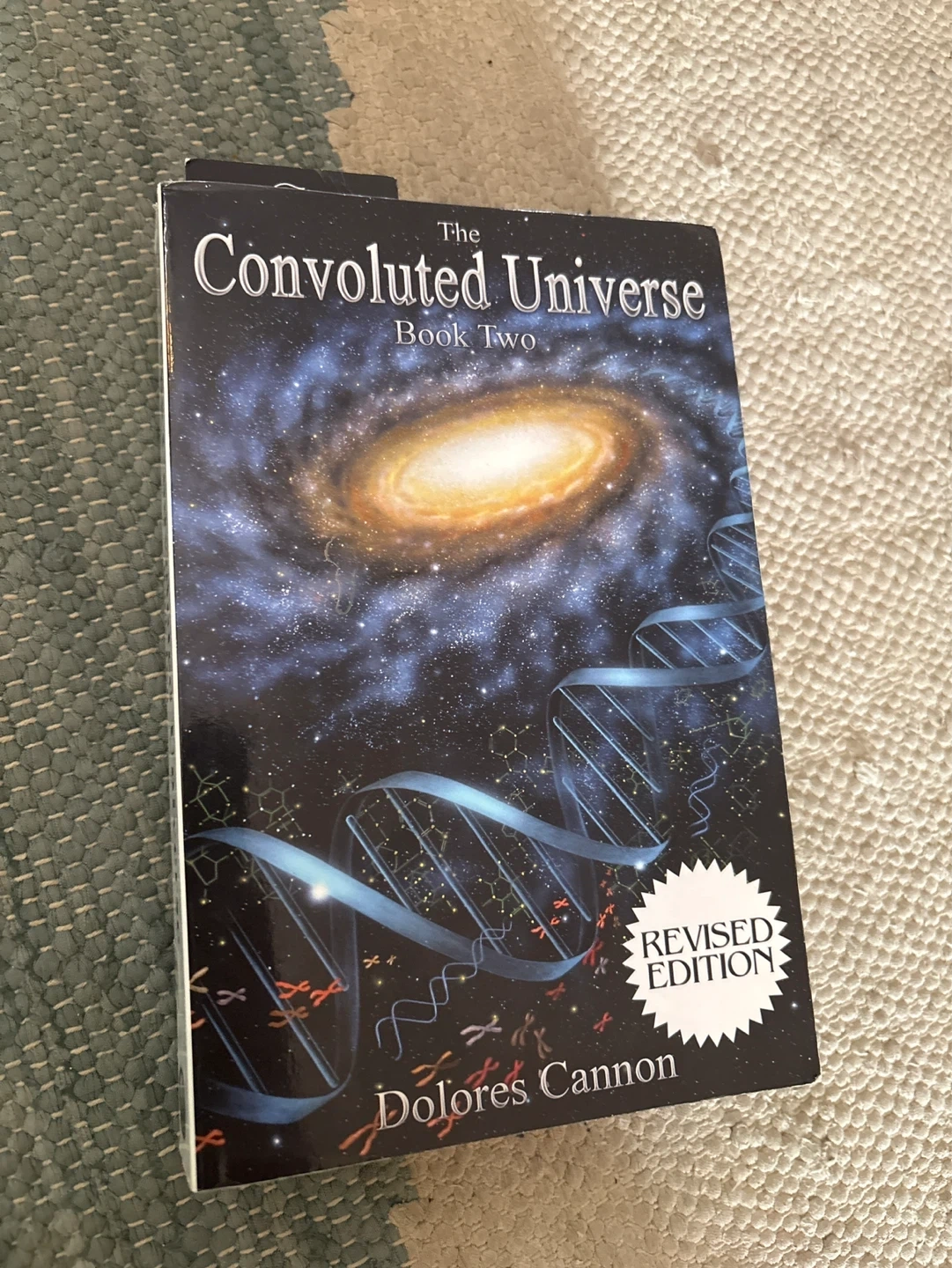 Revised edition of 'The Convoluted Universe Book Two' by Dolores Cannon. This book explores complex concepts with spiritual awareness and vibrational processes. It discusses human experiences in the physical and spiritual realms.