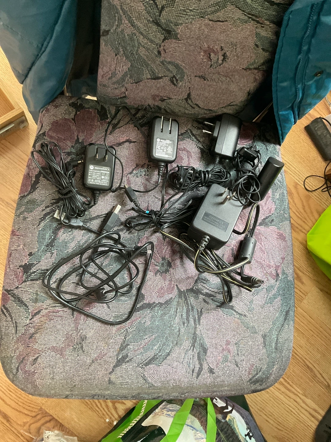 Includes a Motorola AC adapter and several other assorted power bricks and cables. Great for powering multiple devices or as replacements.