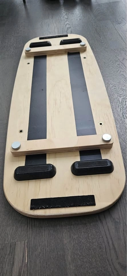 Made of 15-ply pressed premium wood (supports up to 300 lbs) with adjustable stoppers for beginner to advanced levels. Features a thick TPE roller for smooth control and a premium grip surface.