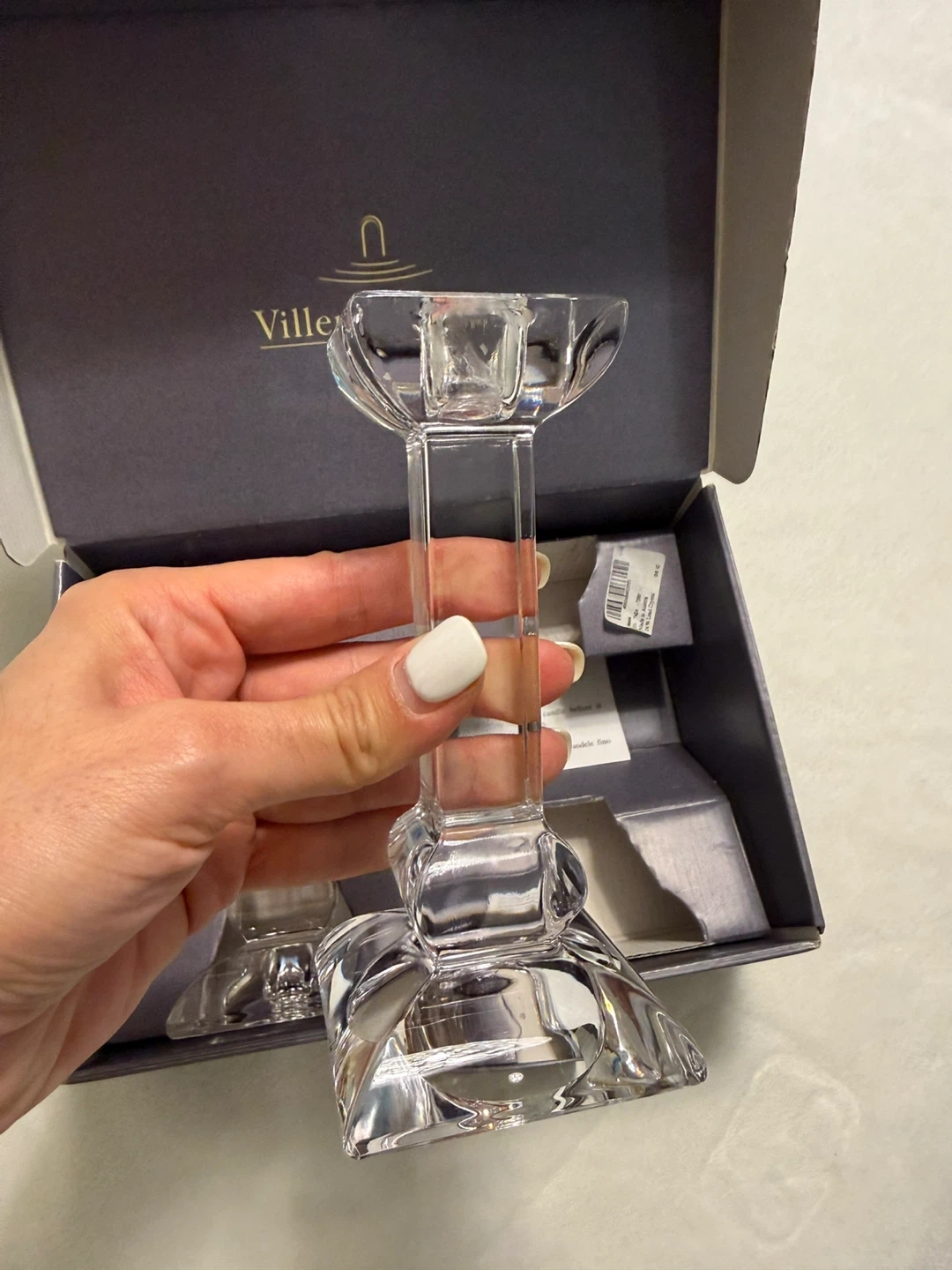 Selling a beautiful set of two Villeroy & Boch crystal candlestick holders! They come in their original box and are in excellent condition. These elegant candlestick holders would make a lovely addition to any home