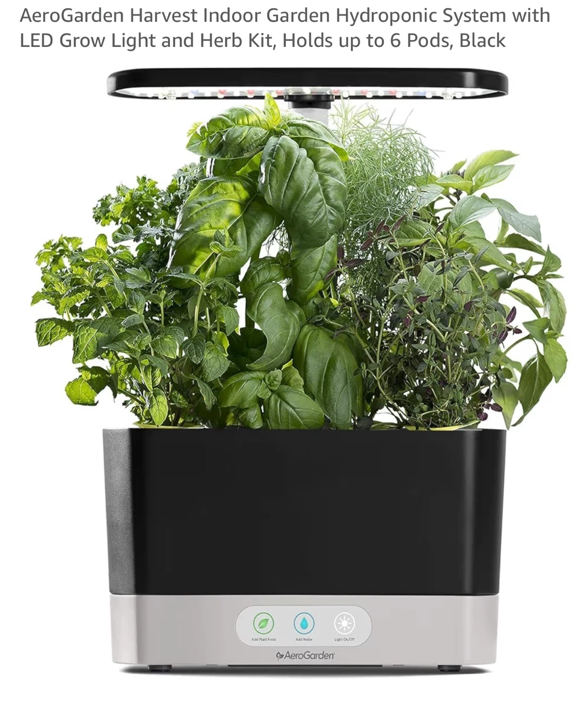 I'm selling an AeroGarden Harvest Indoor Garden Hydroponic System with LED Grow Light and Herb Kit. It holds up to 6 pods and comes in black. Dimensions are approximately 17.4 inches in height, 10.5 inches in width, and 6 inches in depth. It also comes with its original box and components! Gifts, Seed Pod Kit for Aerogarden