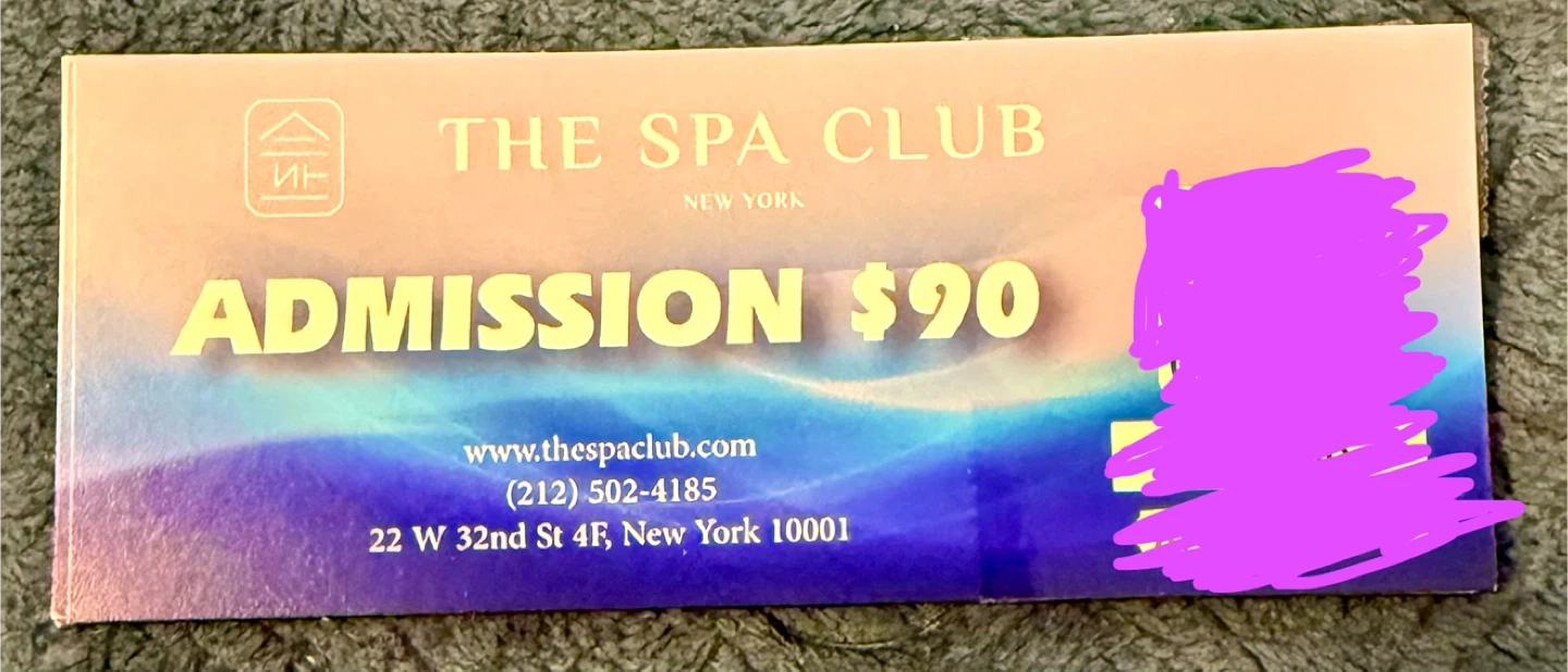This is an admission ticket for The Spa Club in New York, valued at