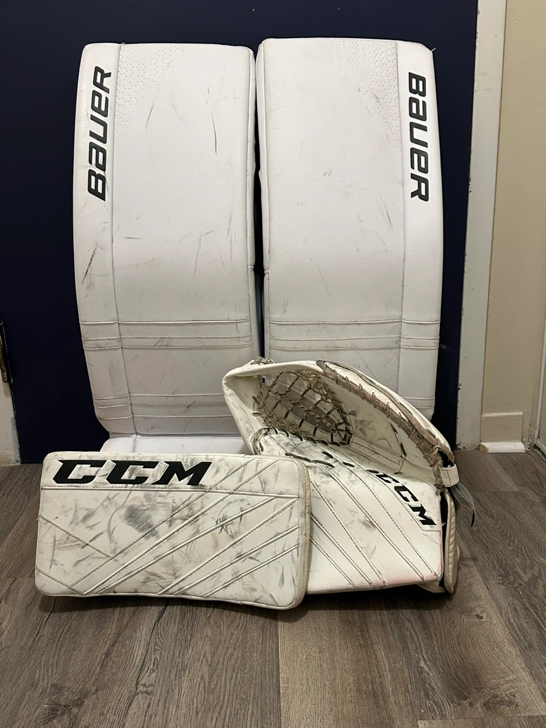Bauer Senior Goalie Pads and CCM Glove Set