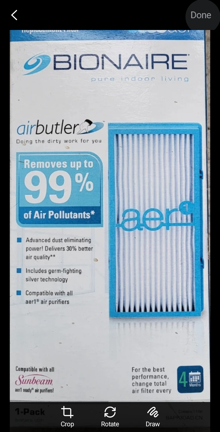 Keep your indoor air fresh with this new Bionaire air purifier! It removes up to 99% of air pollutants. Grear for downtown with all the dust and pollution. Extra Filter included.