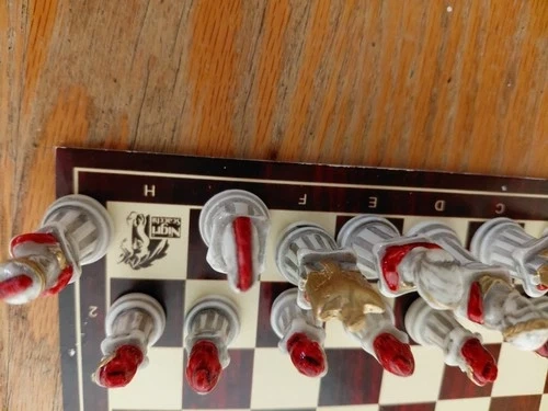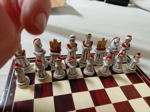 Crafted with care, this Nigri chess set is a true gem for enthusiasts and collectors alike. The pieces are expertly fashioned from alabaster, a testament to the craftsmanship that has gone into creating this vintage chess set. The distinct beauty of the material brings a unique aesthetic to the classic game, making it a standout addition to any collection. Whether you're looking to enhance your gaming experience or seeking a special piece to complete your set of chess artifacts, this Nigri chess set offers a blend of tradition and elegance. Its timeless design and intricate details appeal to chess lovers who appreciate the artistry that surrounds the game.