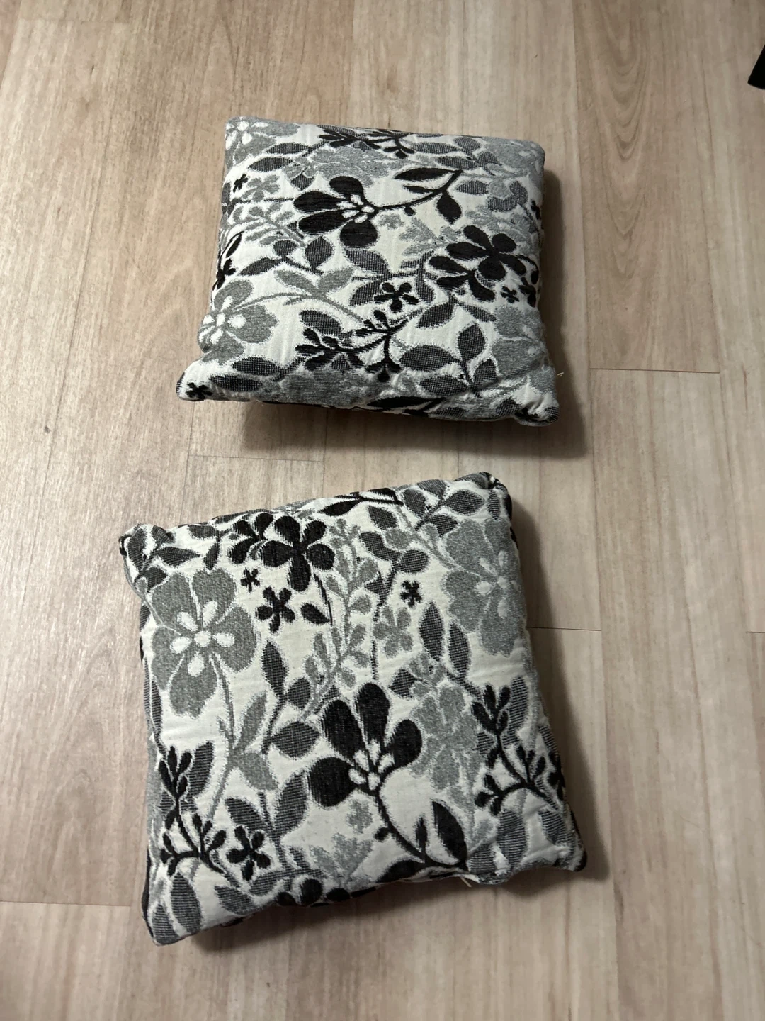 Selling a set of two throw pillows with a lovely floral pattern! They feature a black, gray, and white color scheme that would look great in any room. These pillows are in great condition and ready to add some style to your home