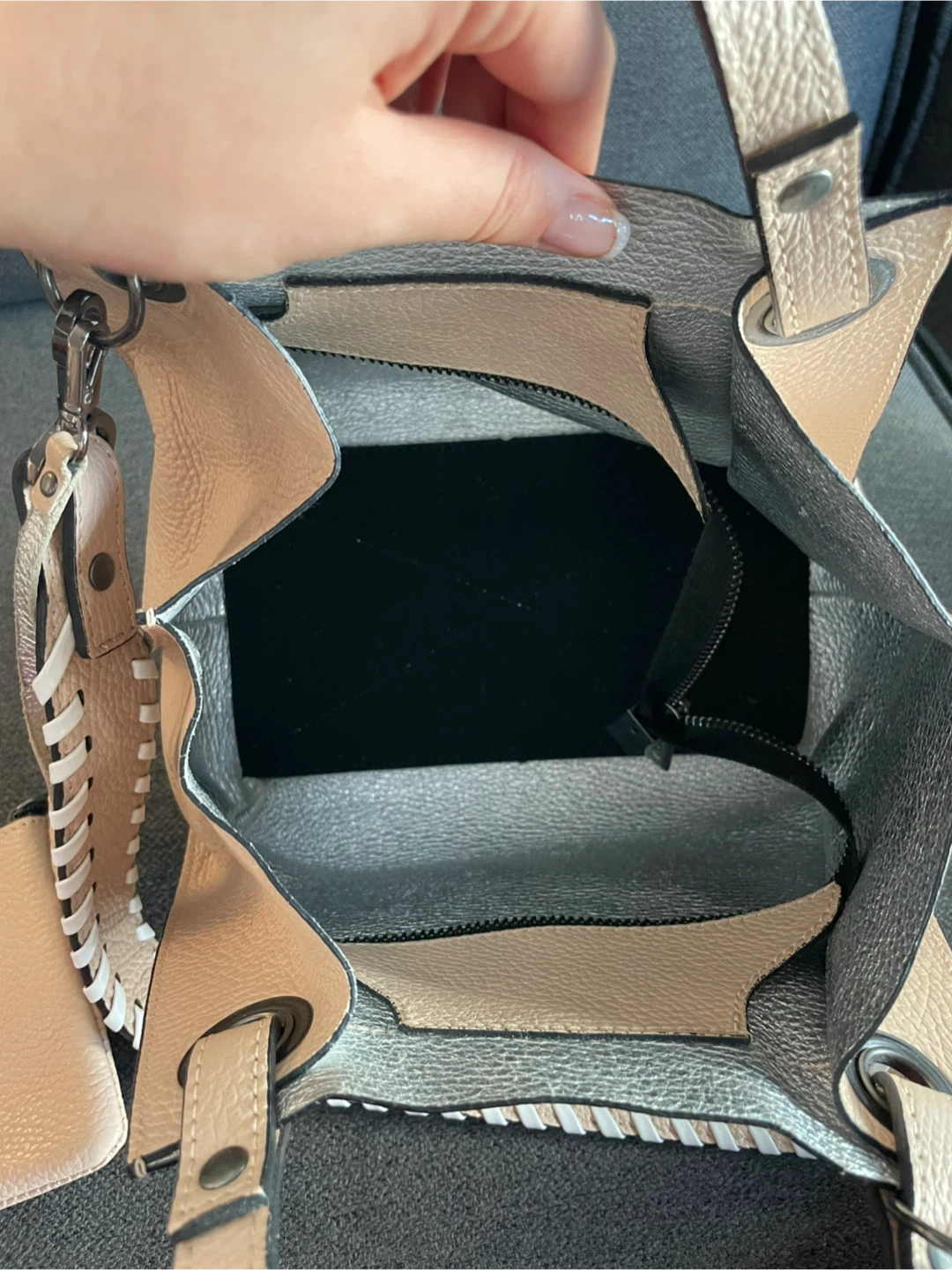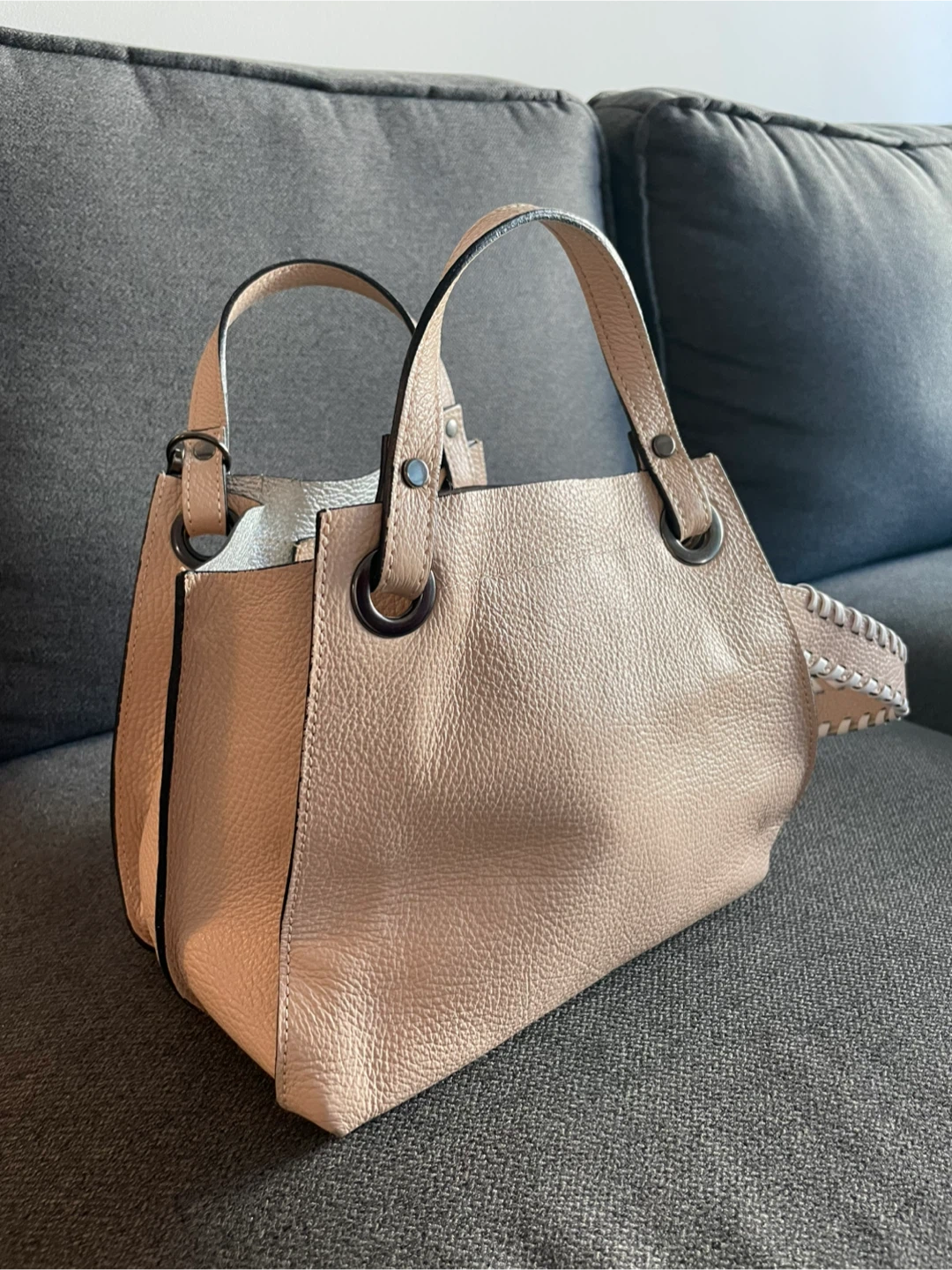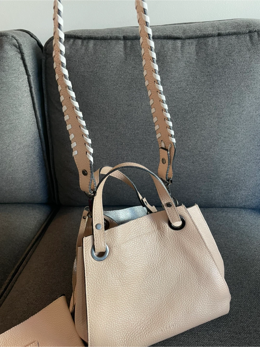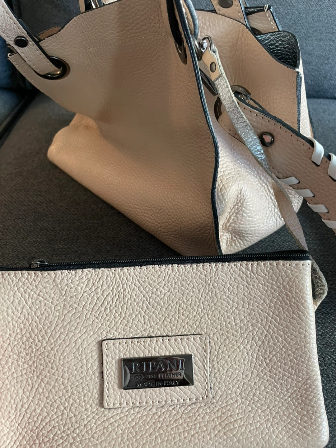 Selling a lovely Ripani handbag made in Italy! It's a beautiful beige colour and made of leather. It comes with a matching pouch. Perfect for everyday use or a special occasion.