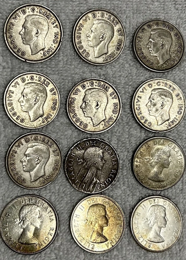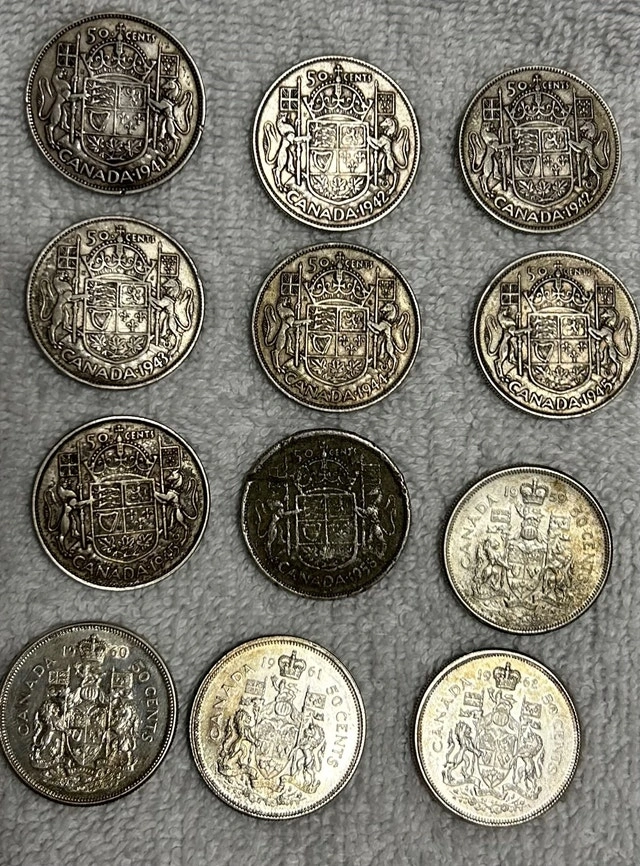 Lot of Twelve Canadian Silver Halves for spot price!!! Definitely worth the price as I will only accept bids at or above the current melt price. - if the ad is up, the coins are available !