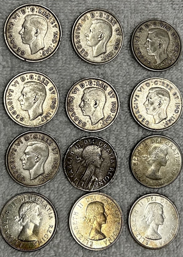 Twelve Canadian Silver Half Dollars