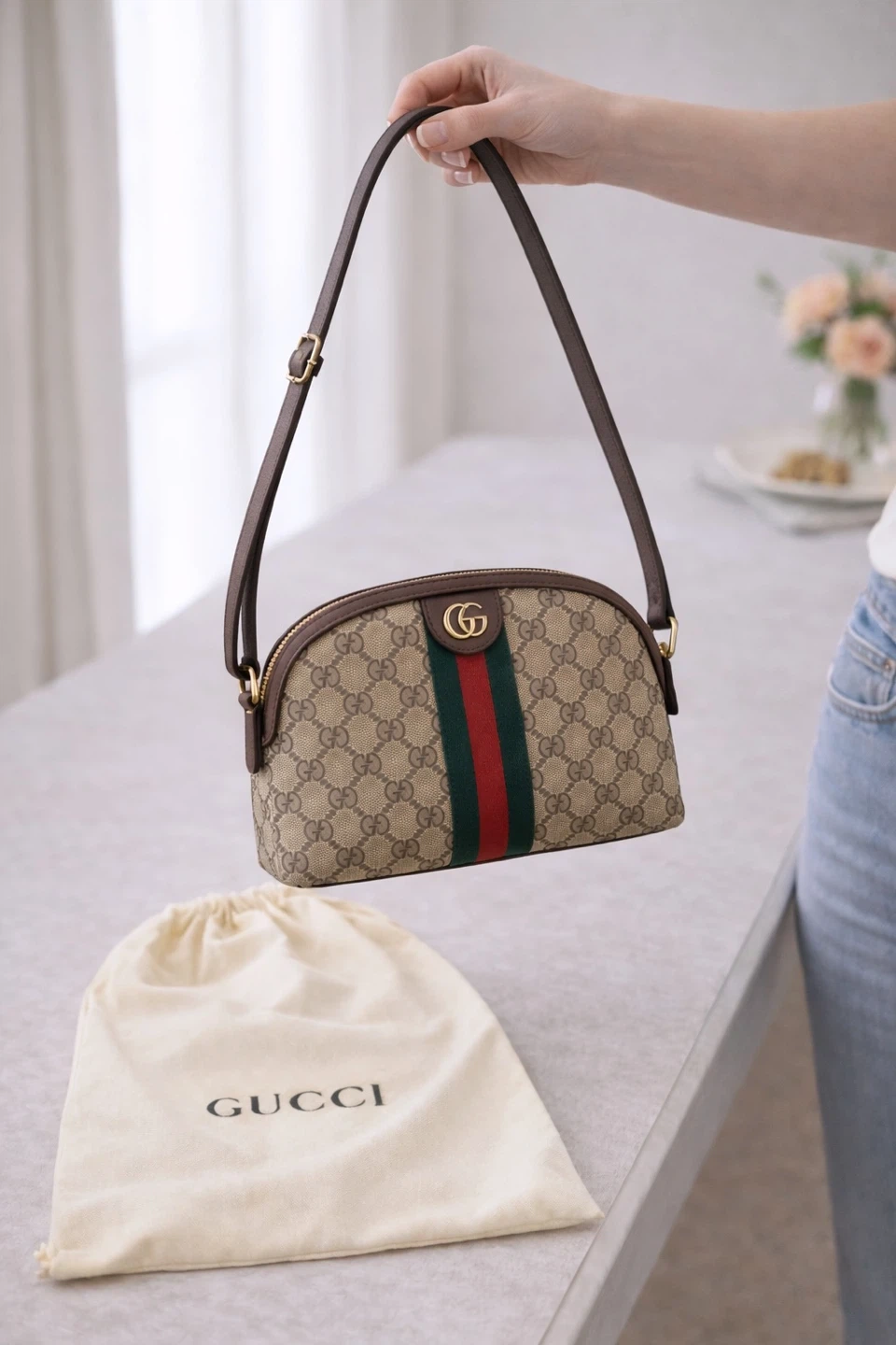 Black Crocodile-Embossed Satchel Handbag with Gold Hardware