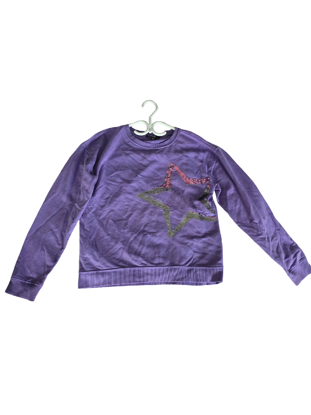 This is a cute purple sweatshirt from George It has a sparkly star on the front that really catches the eye. Perfect for adding a bit of fun to any outfit! sequins can be flipped from silver to pink. Star is offset. Size Xtra large girls 14-16
