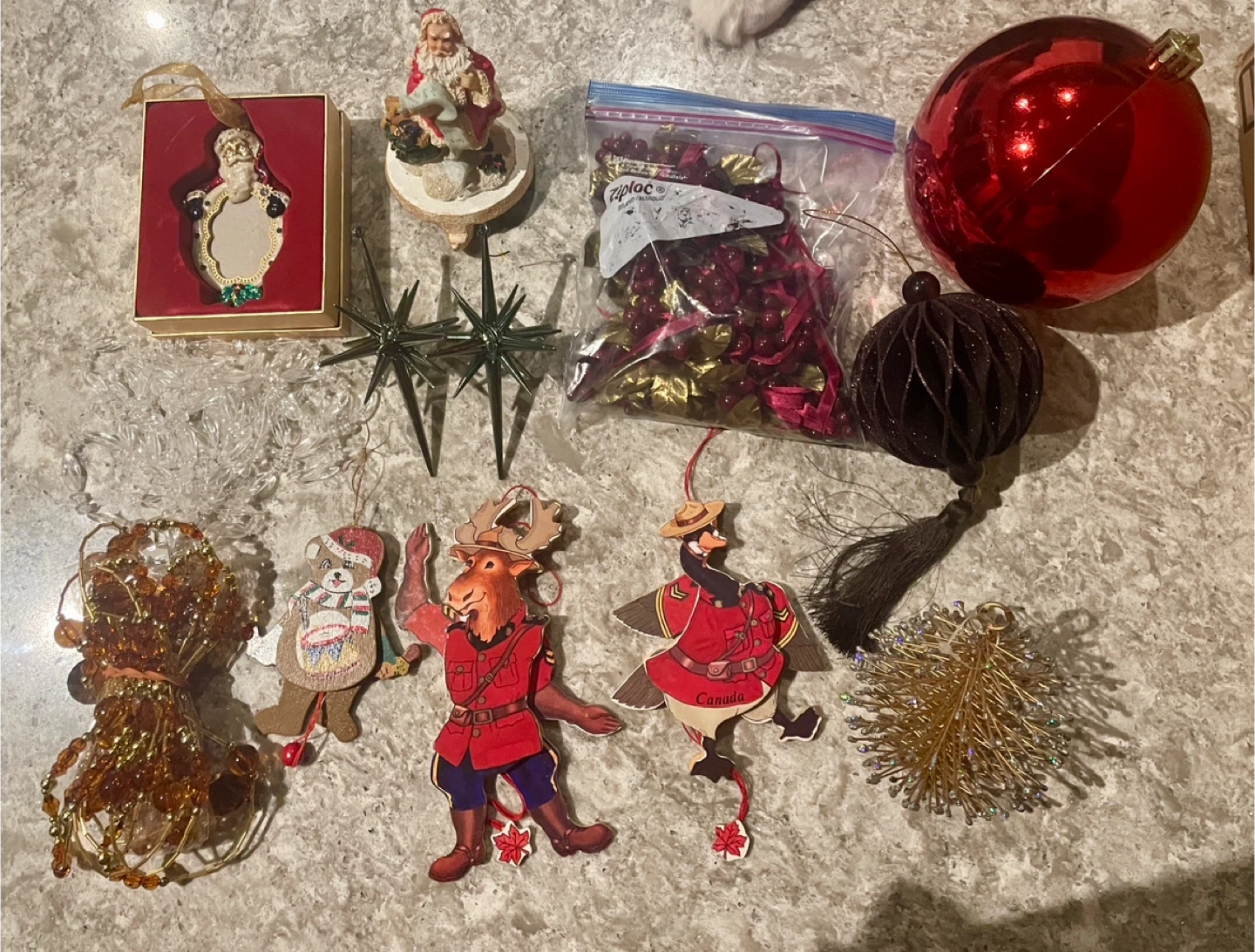 Assorted Christmas Stockings and Decorations