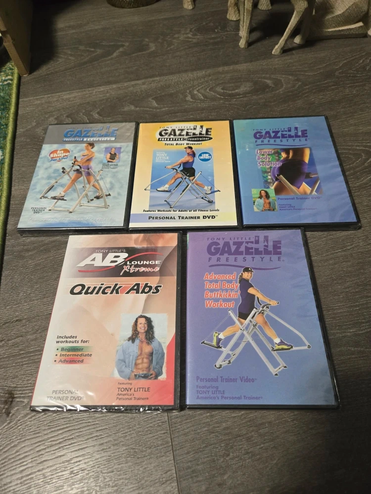 I'm selling a collection of Tony Little Gazelle Freestyle Personal Trainer DVDs and Ab Lounge Ab DVD.. These DVDs feature workouts for adults at all fitness levels. Get ready to kickstart your fitness journey!