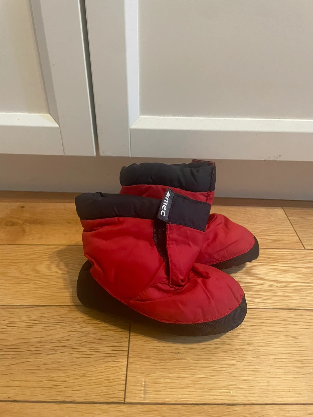 Selling a pair of MEC baby booties in red and black! They are size small and made with: