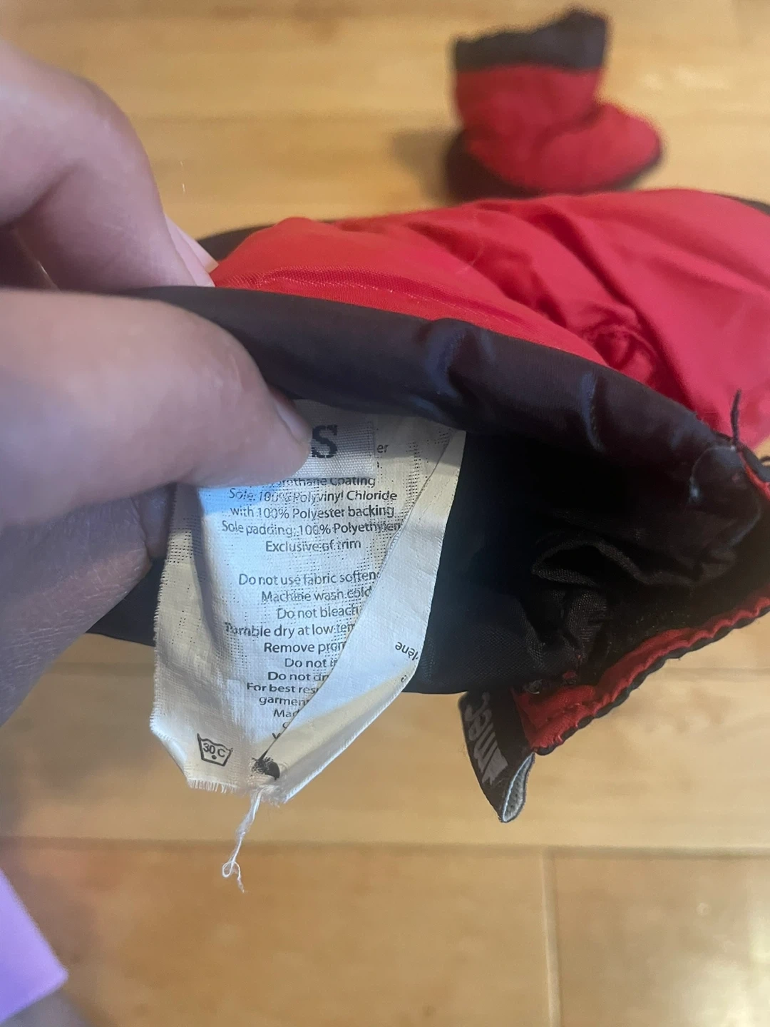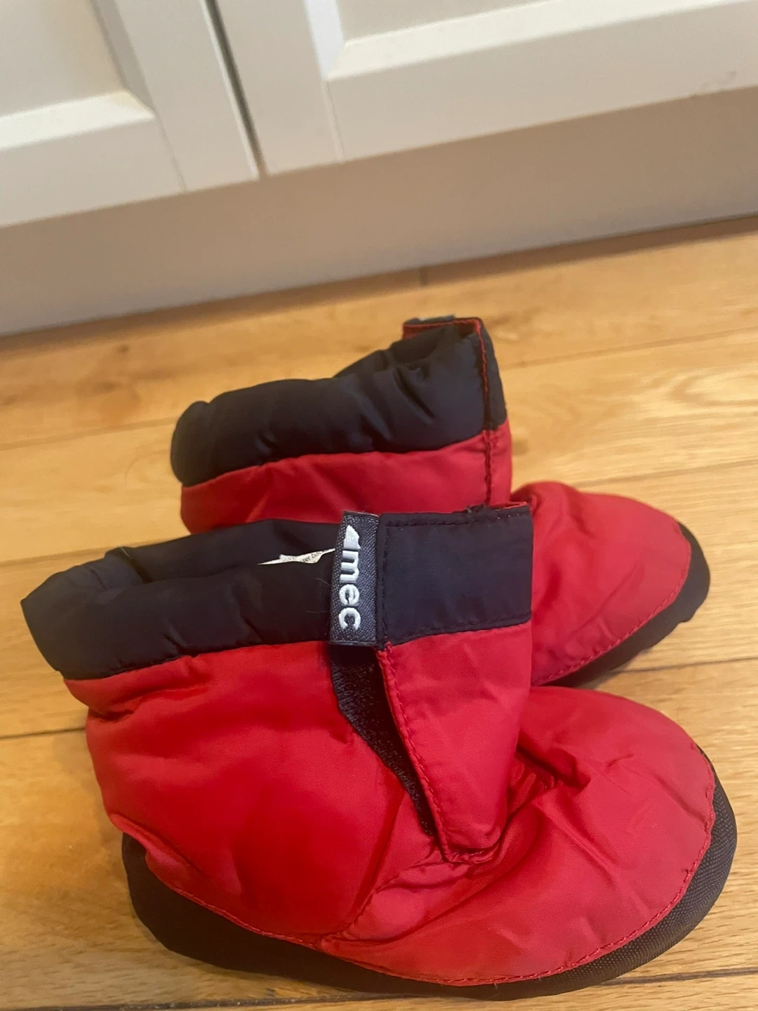 Selling a pair of MEC baby booties in red and black! They are size small and made with: