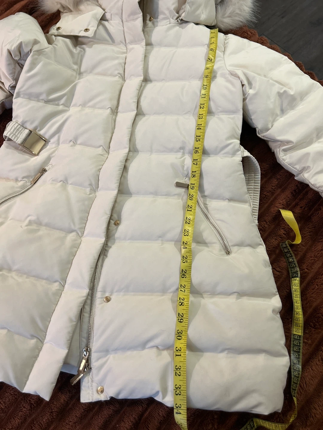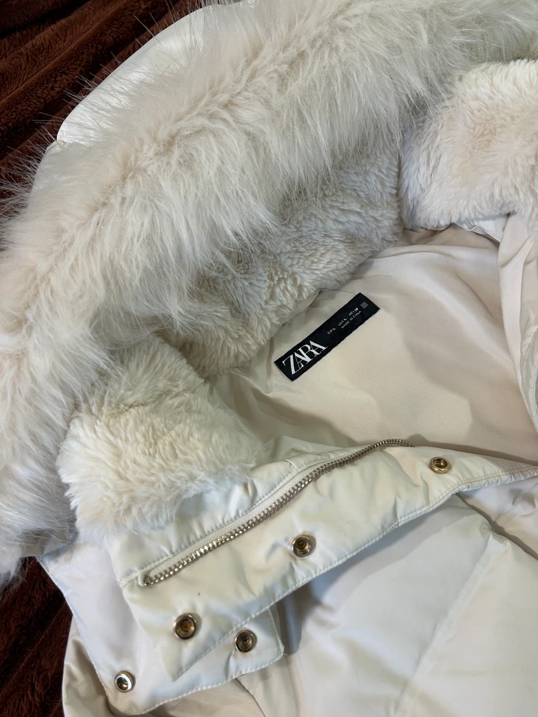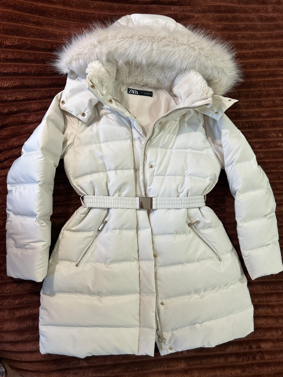 Zara Puffer Coat with Faux Fur Hood - Size S