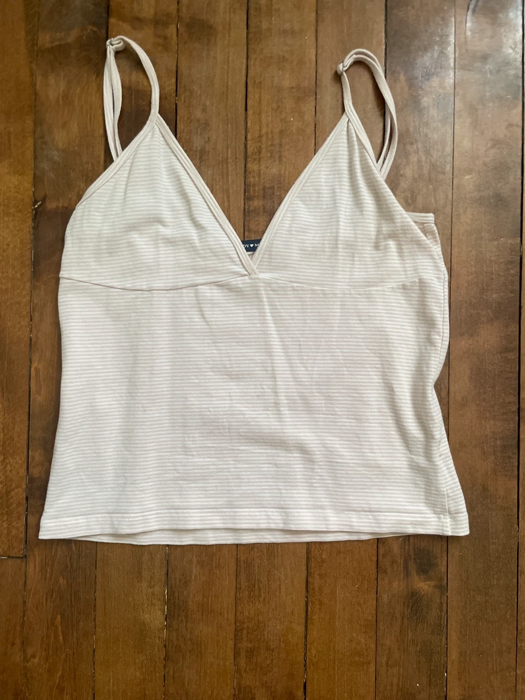 Selling a cute Brandy Melville tank top! It's a light pink and white striped pattern. Perfect for summer!