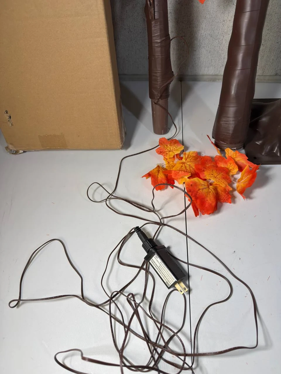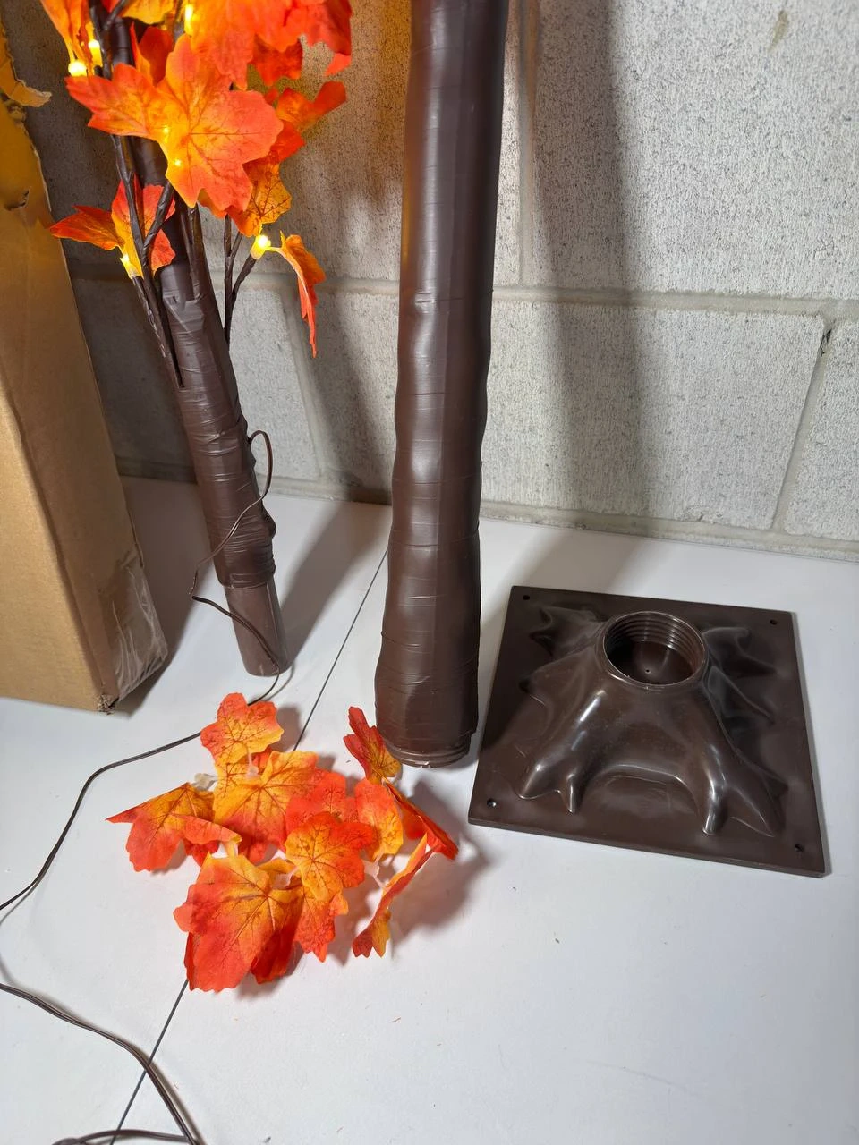 Elegant 1.8 m decorative maple tree with 120 warm white LED lights and a realistic trunk, acorns, and maple leaves. The bendable copper branches let you shape it freely for personalized décor. Made from durable plastic with a stable square base and USB power, perfect for adding a cozy glow indoors or outdoors during fall, Thanksgiving, or Christmas.