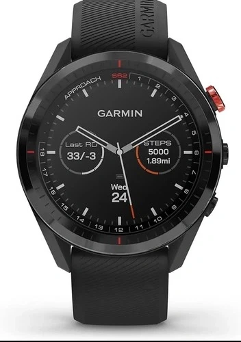 Garmin Approach S62, a premium smart watch and GPS golf watch that enhances your play with detailed course mapping and precise performance data! This watch is new and never been used. Color: Black