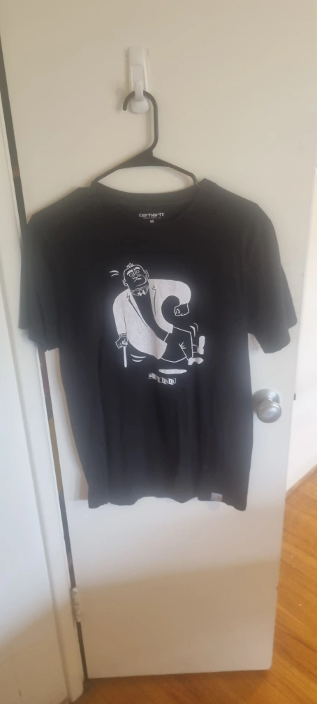 Selling a Carhartt black graphic tee in size medium. It features a cool graphic design on the front. Great for casual wear!