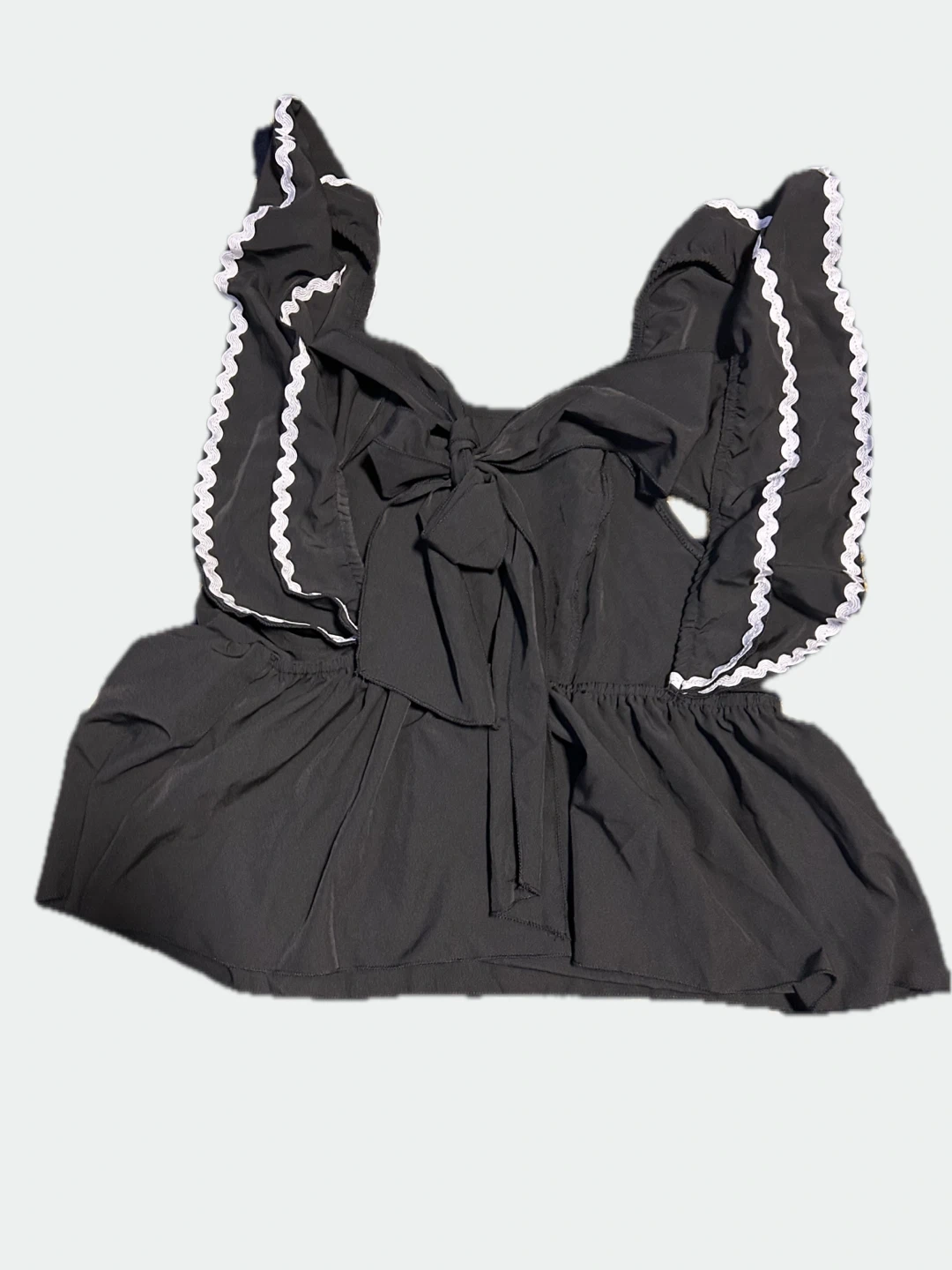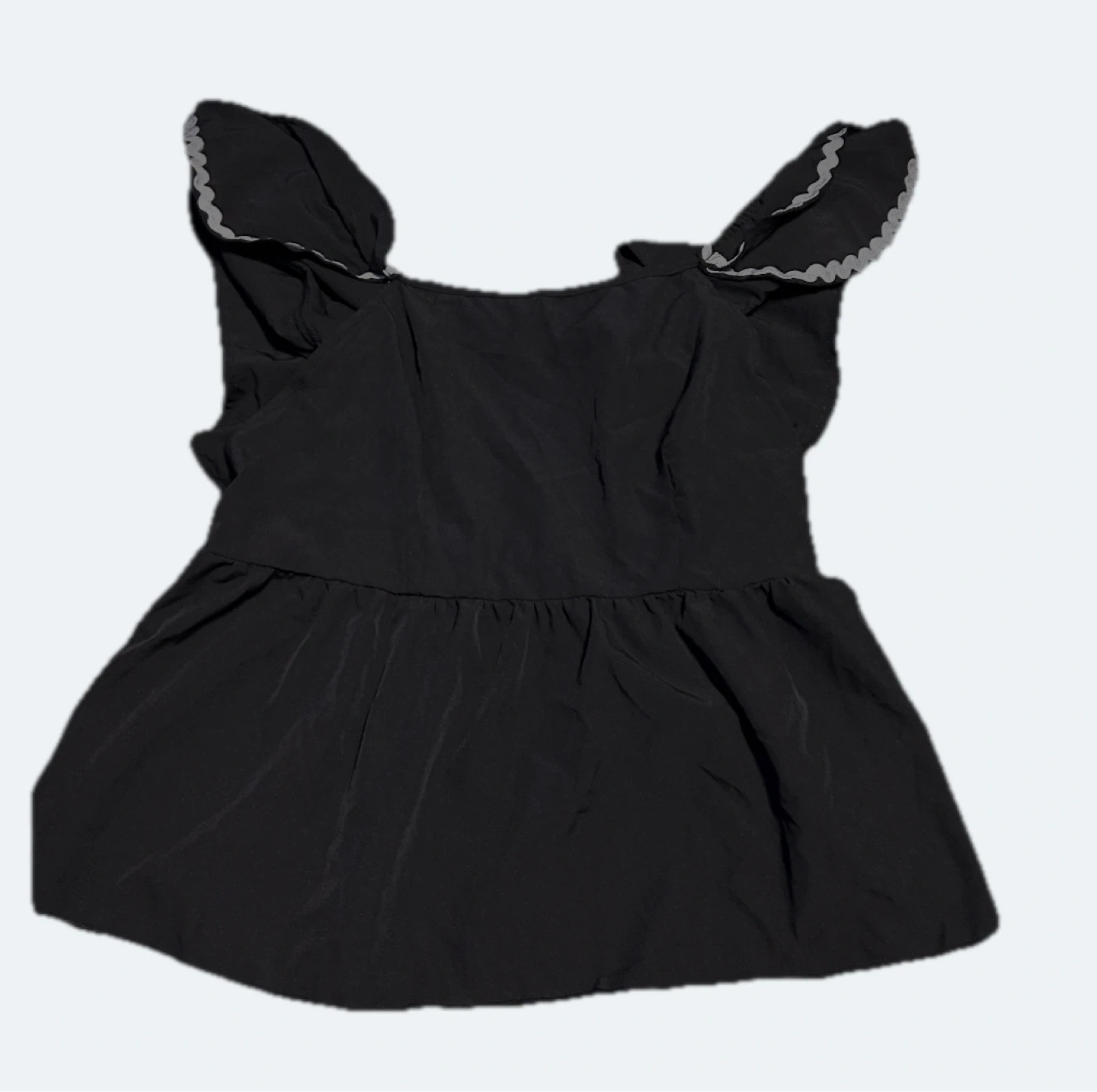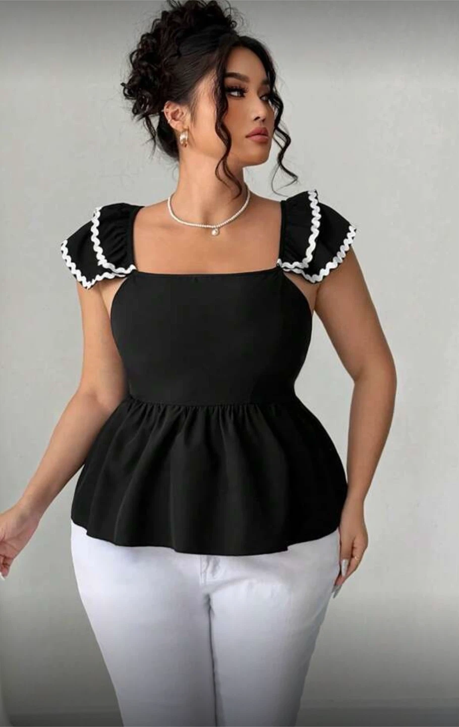 Selling a cute Shein black ruffle peplum top! It's in great condition and features a flattering peplum silhouette with ruffle detailing on the sleeves. Perfect for dressing up or down!