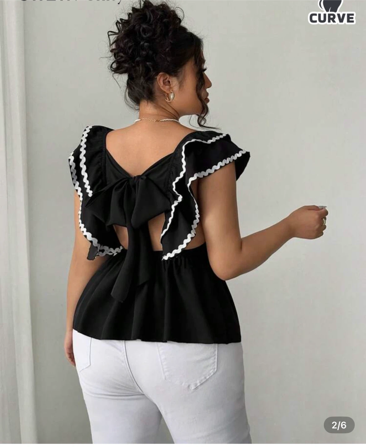 Selling a cute Shein black ruffle peplum top! It's in great condition and features a flattering peplum silhouette with ruffle detailing on the sleeves. Perfect for dressing up or down!