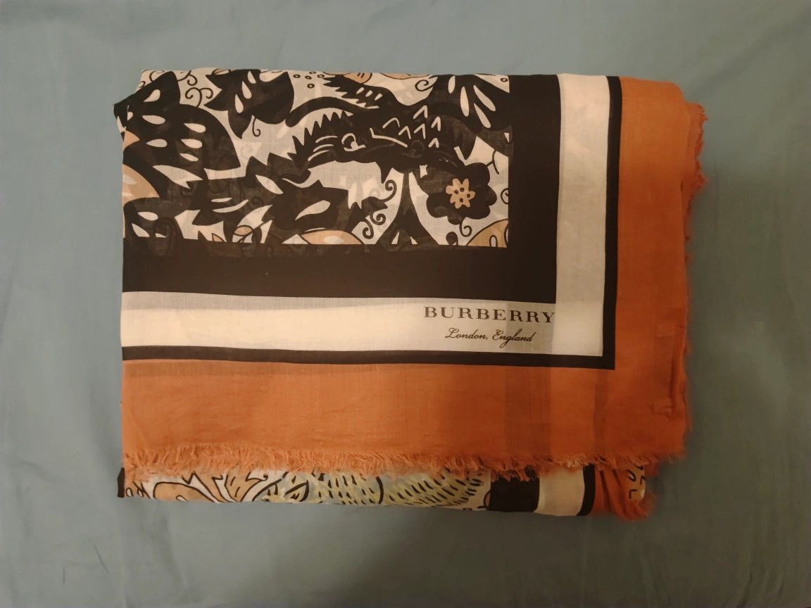 I bought this cape on Burberry's website in 2017 for $1,150 and it measures 1.35m by 1.9m.No box.Cash only.