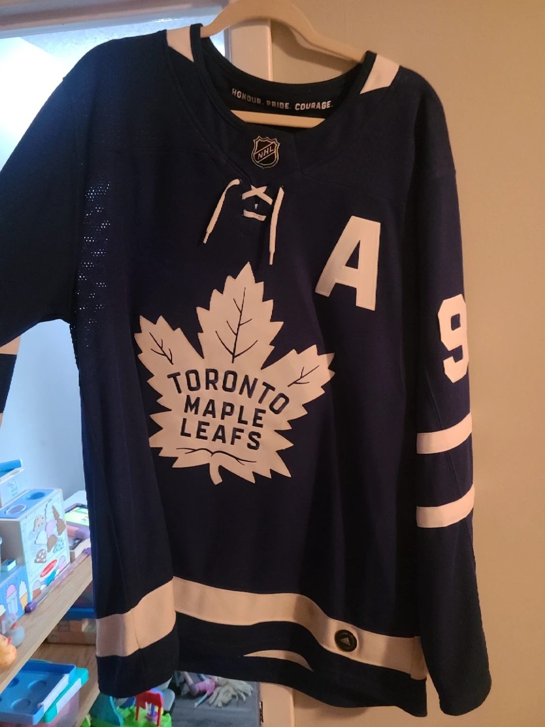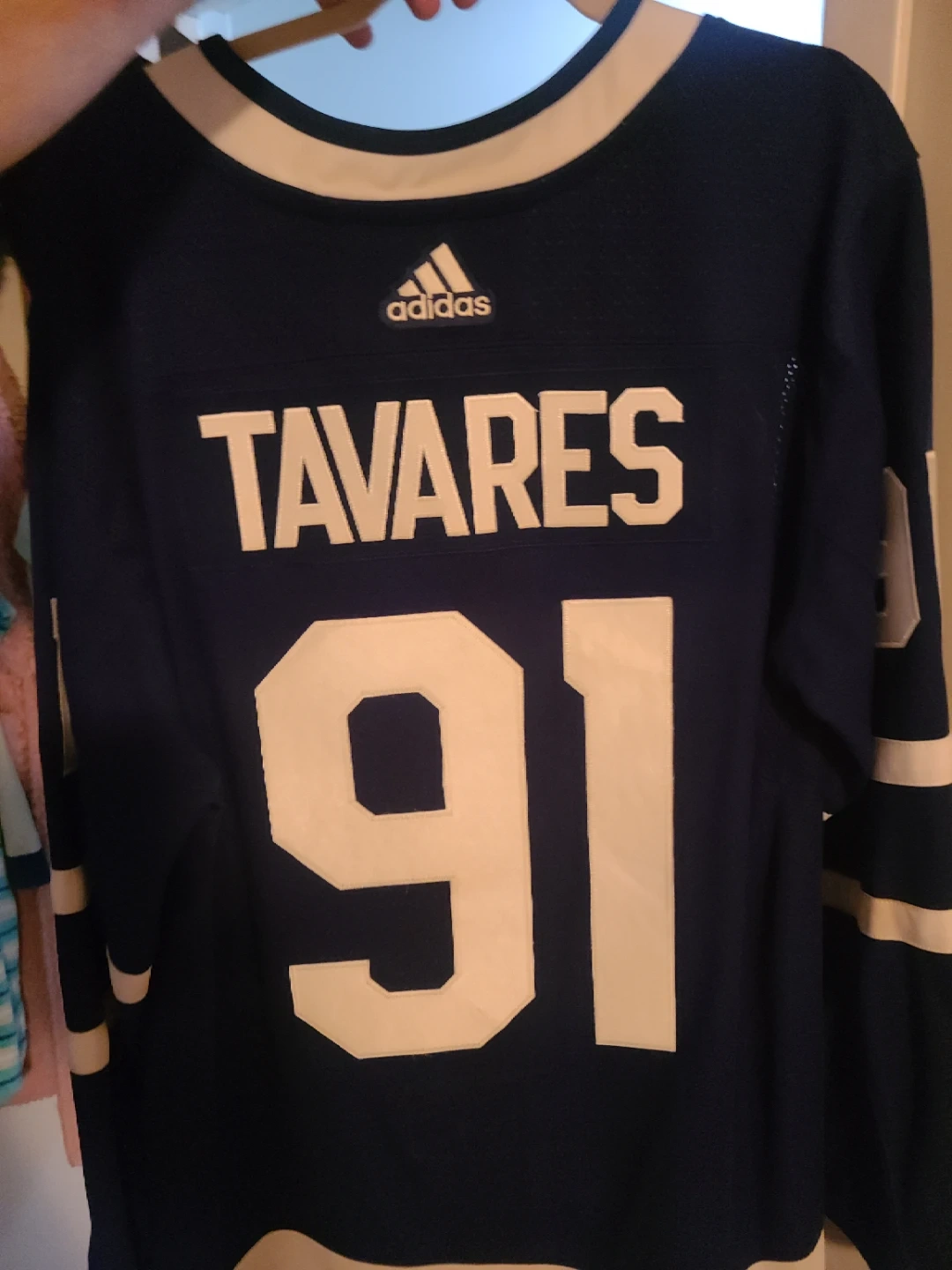 Authentic Adidas Toronto Maple Leafs hockey jersey. Features John Tavares' name and number 91. Made with breathable fabric and classic team detailing. It's ready for game day!