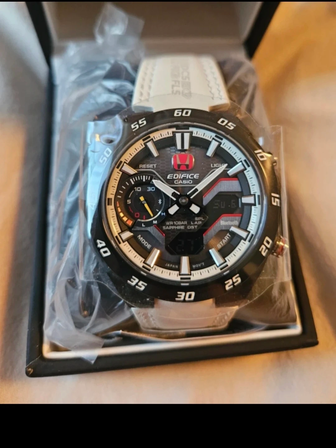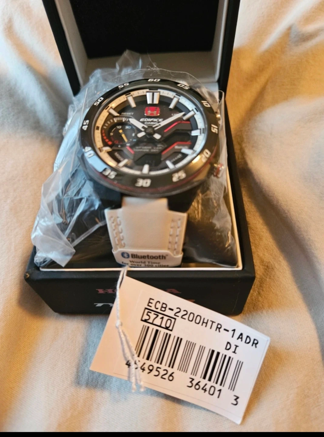 Selling a limited edition brand new in box Casio Edifice Honda Type R ECB-2200HTR-1ADR watch! It comes with the box and instructions. This watch is a special collaboration model with Honda Type R. It features Bluetooth connectivity and is water resistant to 10 bar.