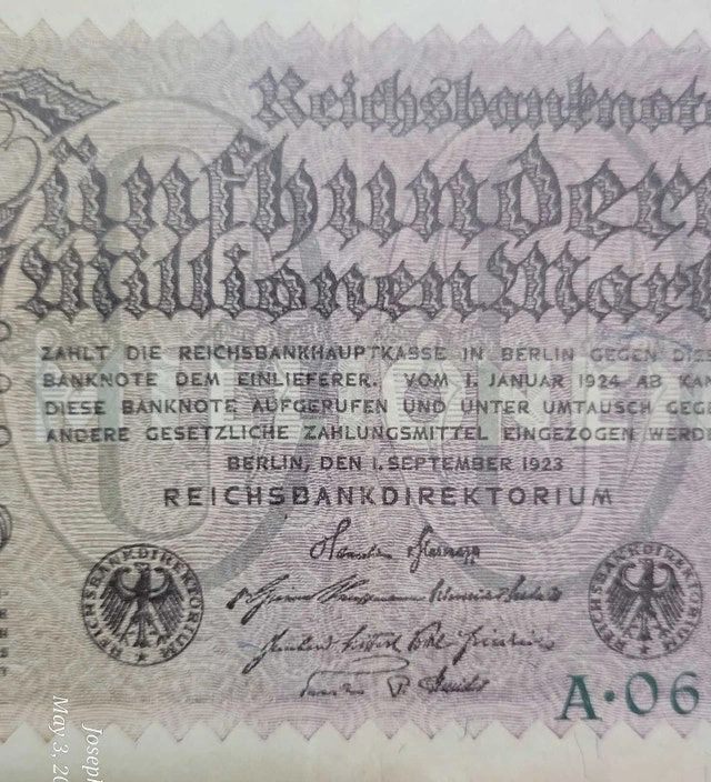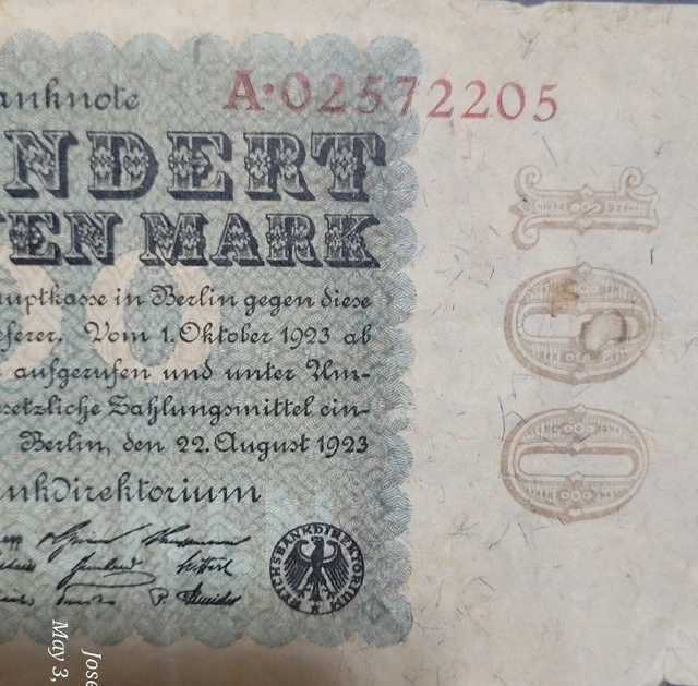 Includes one 1923 100 million mark and one 1924 500 million mark from Germany. Both are circulated and in good to fair condition. Please see pictures for details.