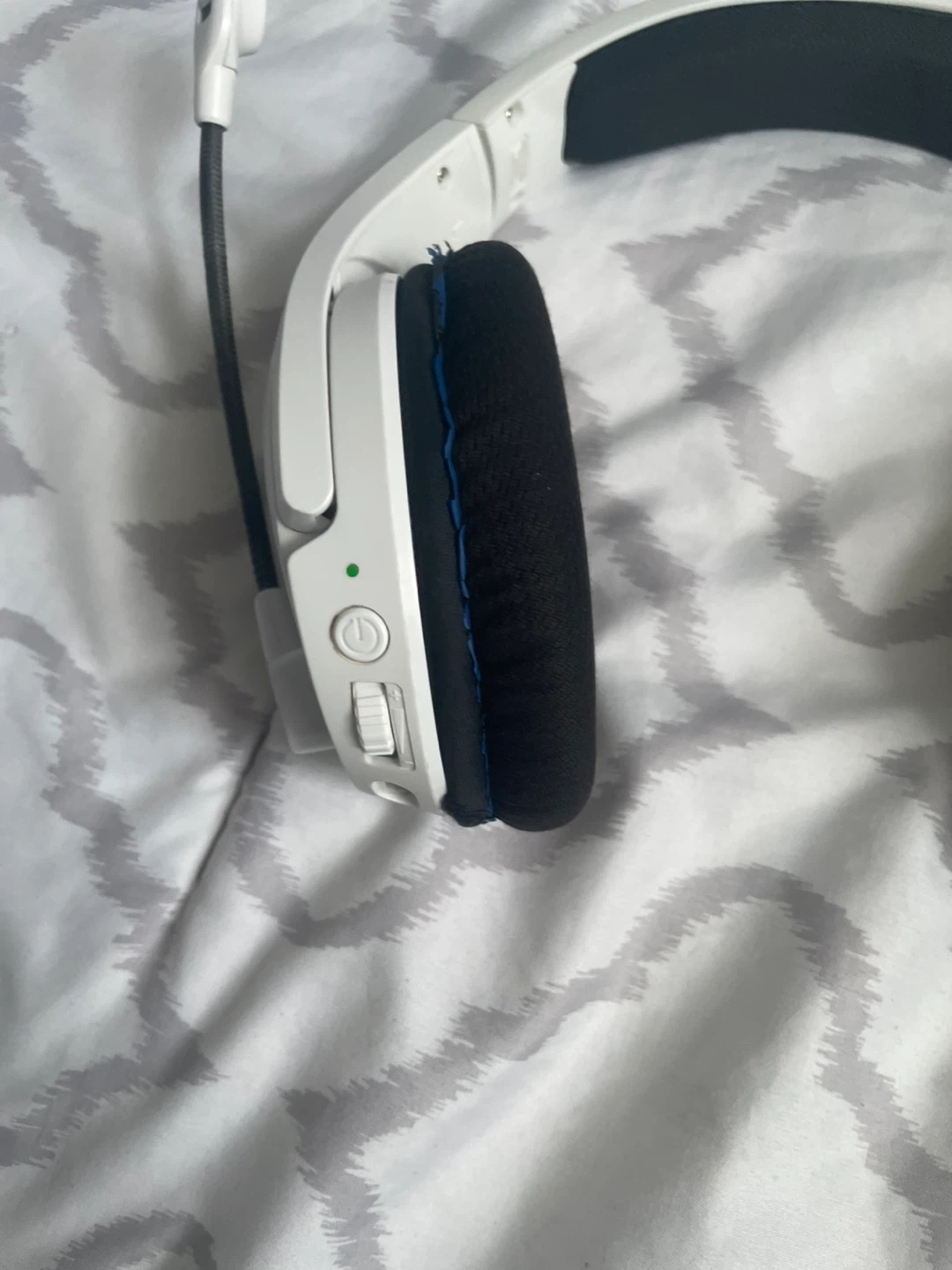 Selling a gaming headset in white! It comes with a microphone and a USB dongle. Perfect for gaming or online meetings