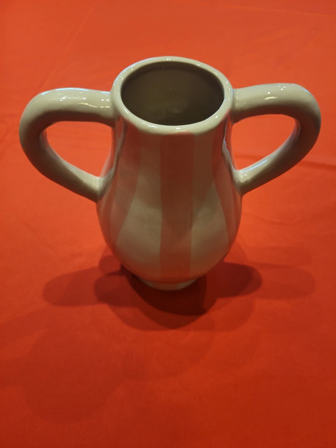 It has a charming design with two handles and vertical stripes!