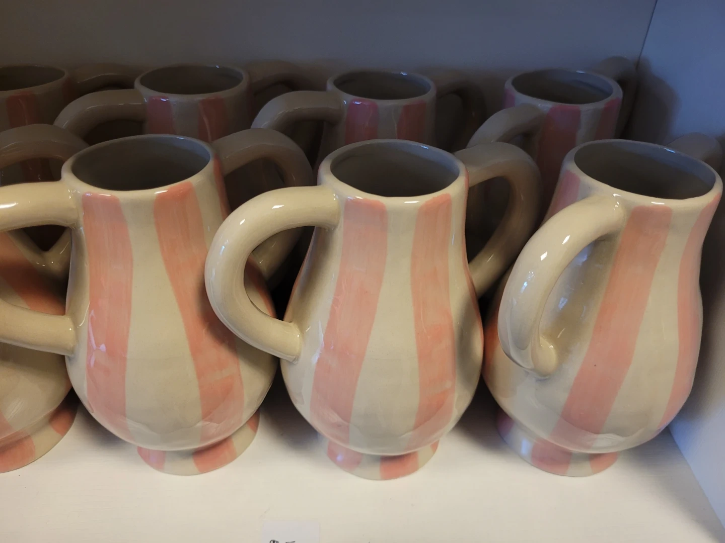 It has a charming design with two handles and vertical stripes!