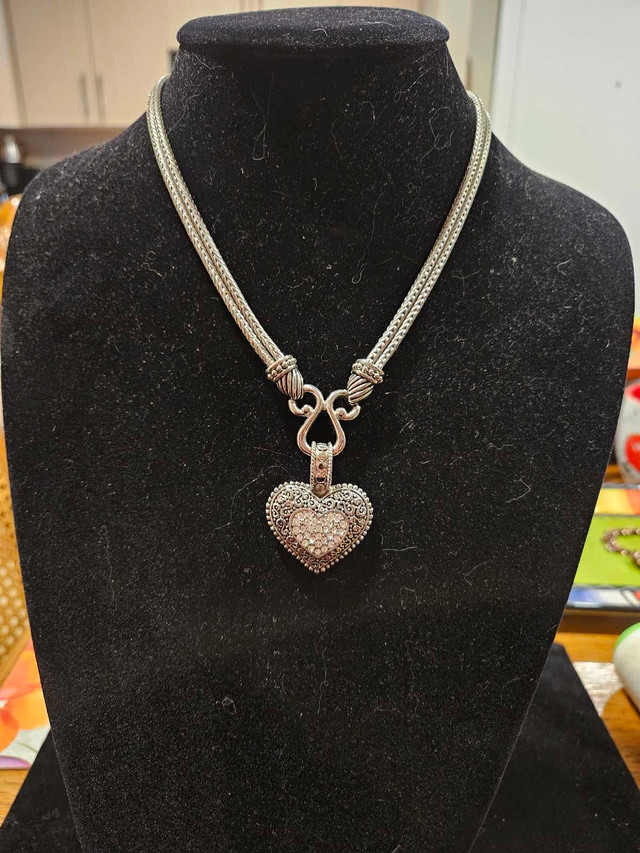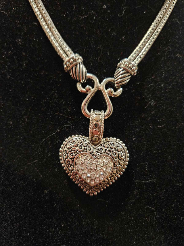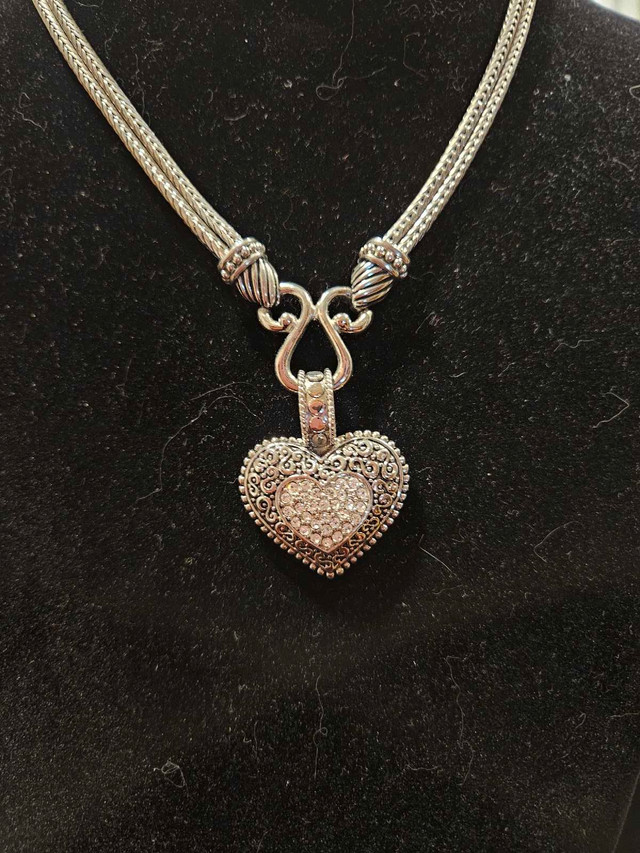 Add a touch of sparkle to any outfit with this beautiful Lia Sophia heart pendant necklace. This necklace is in used, but excellt condition. The pendant is a heart shape paved with clear crystals, suspended from a double strand silver chain. Specifications: • Brand: lia Sophia • Pendant Shape: Heart • Stone: Crystal • Chain Style: Double Strand If you see this ad, it means this Brighton beauty is still available and ready to find its new home.