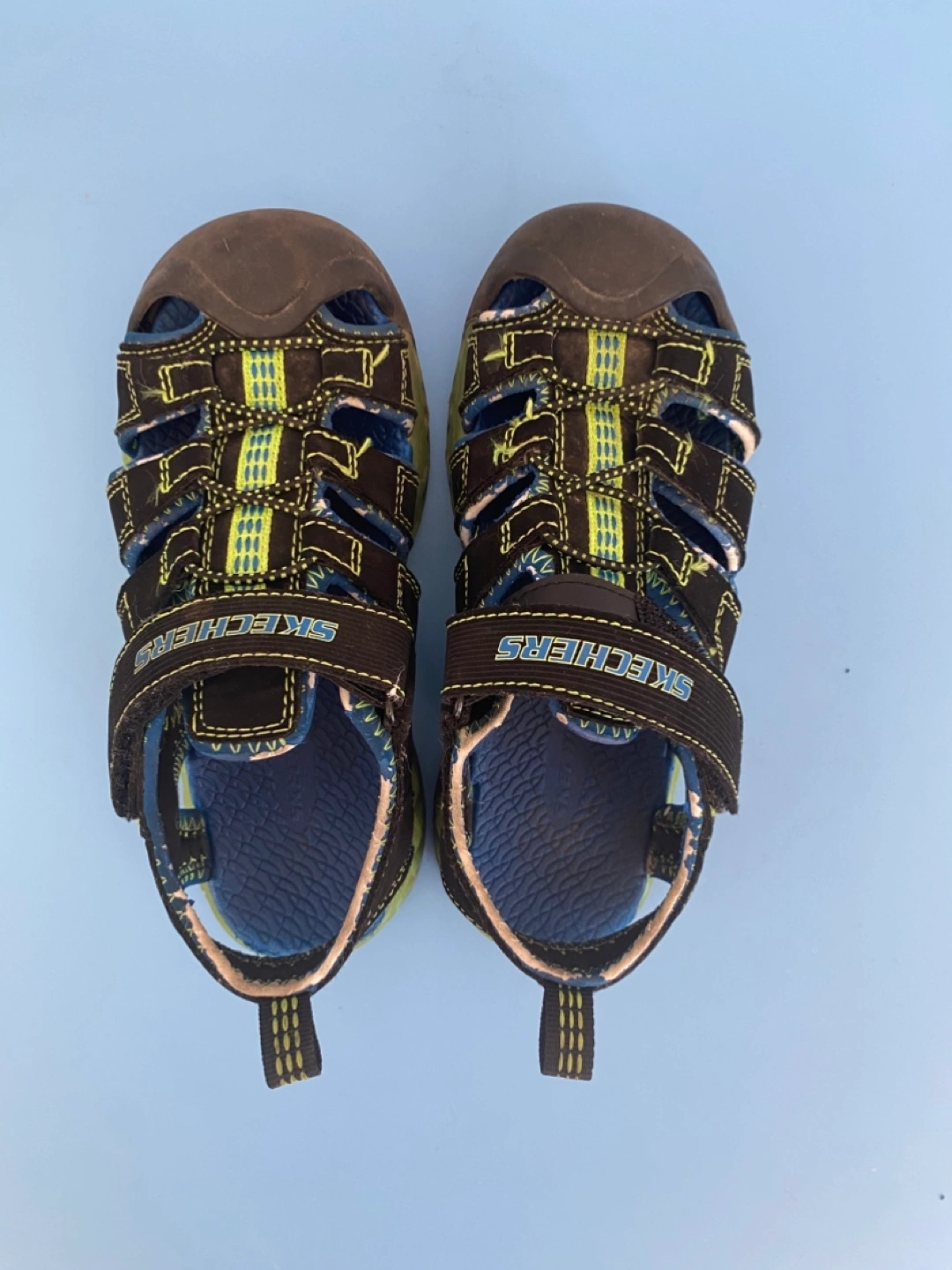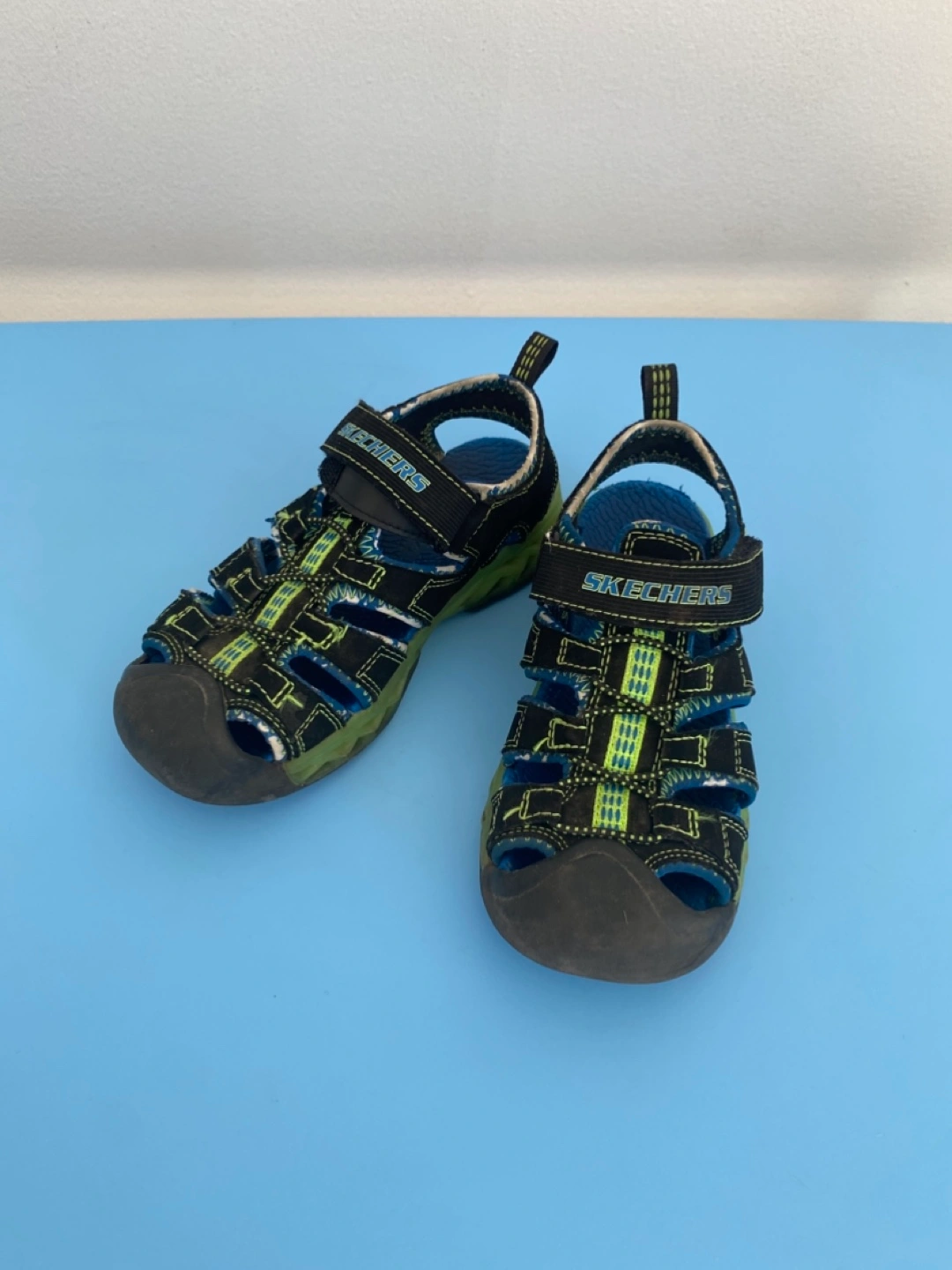 Skechers kids' sandals with hook-and-loop closures for easy on and off. These shoes have fun light-up soles that activate with movement. Size 12.