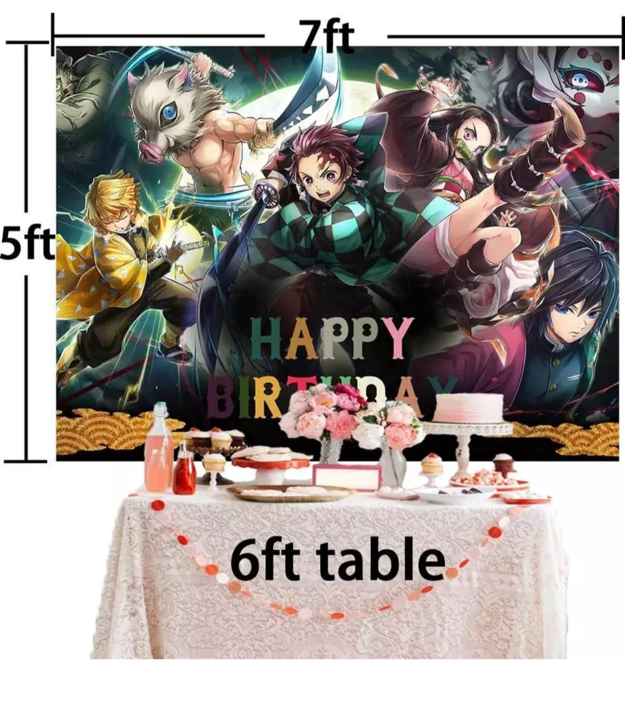 Demon Slayer Happy Birthday Banner 7ft x 5ft