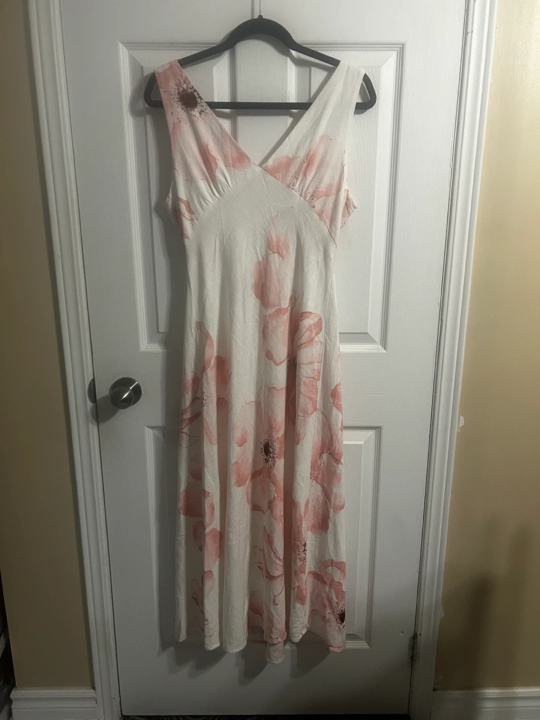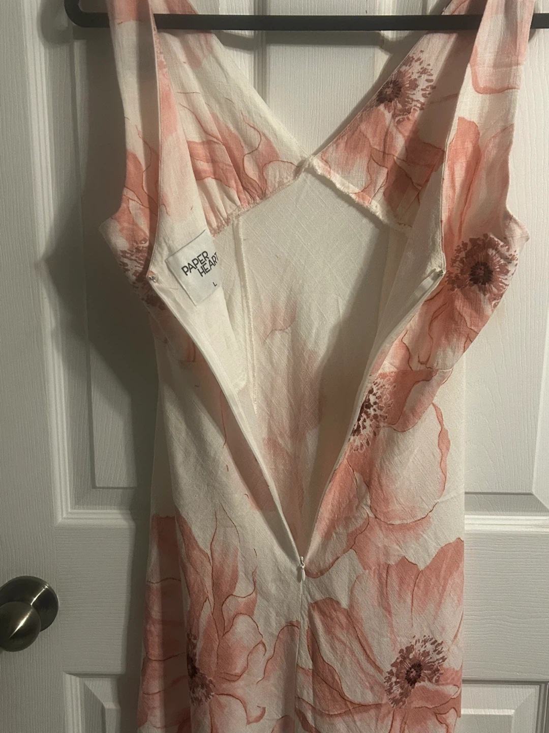 This Paper Heart maxi dress features a beautiful floral print in pink and white. It's a size large with a flattering V-neckline and a zipper closure. Perfect for summer occasions!
