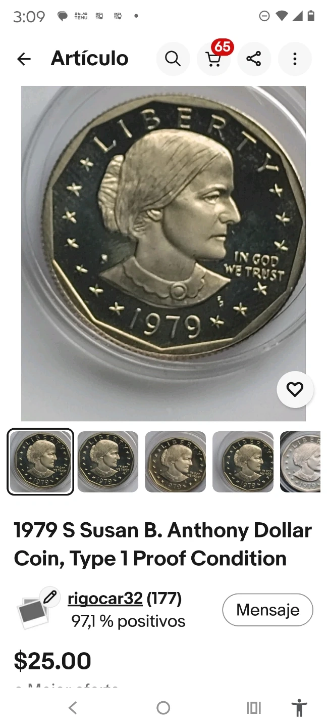Buy & Sell1979 S Susan B. Anthony Dollar Coin1979 S Susan B. Anthony Dollar Coin$30This is a 1979 S Susan B. Anthony dollar coin. It's a Type 1 Proof coin.ConditionNewWHERE TO MEETestación 103 corona QueensView MapSELLERverifiedRigo CardosoCorona650 reviews0 chats·1 favorites·68 viewsSEND CHAT TO SELLERHi Rigo Cardoso! I’m interested in your listing.Hi Rigo Cardoso! I’m interested in your listing.Get the Karrot app to chatSign In to chat