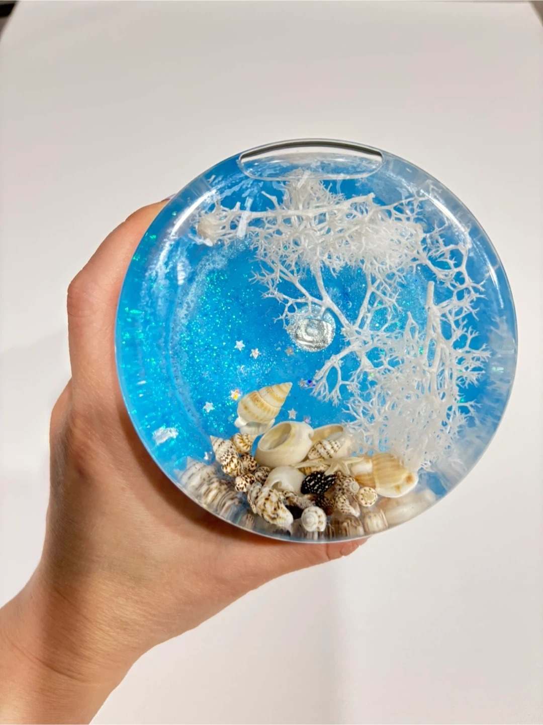 Ocean Themed Candle with Seashells and White Coral