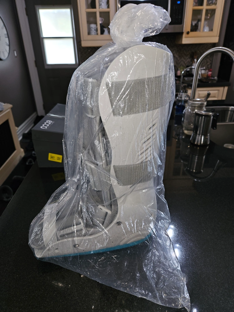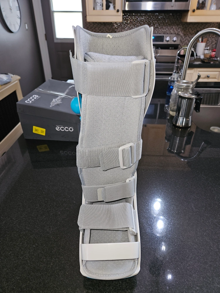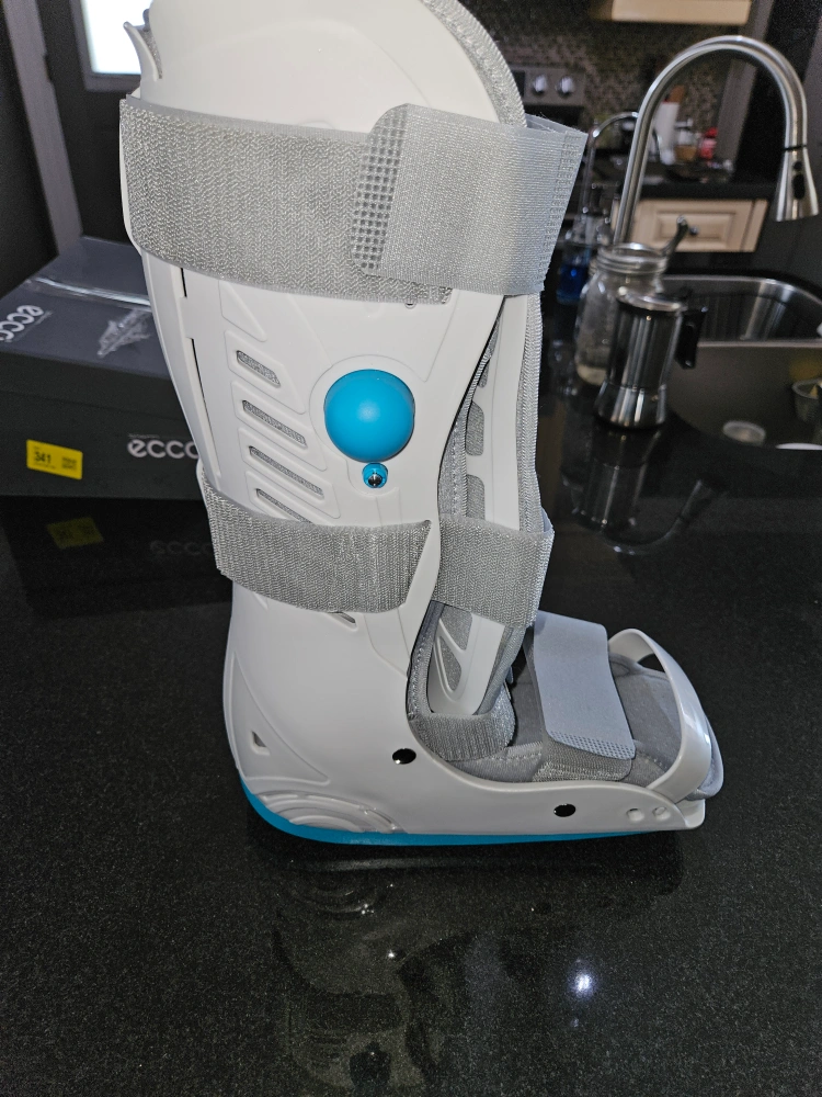 Medical inflatable walking boot for fractures or sprains. It's designed for comfort and support. This boot is a medium.