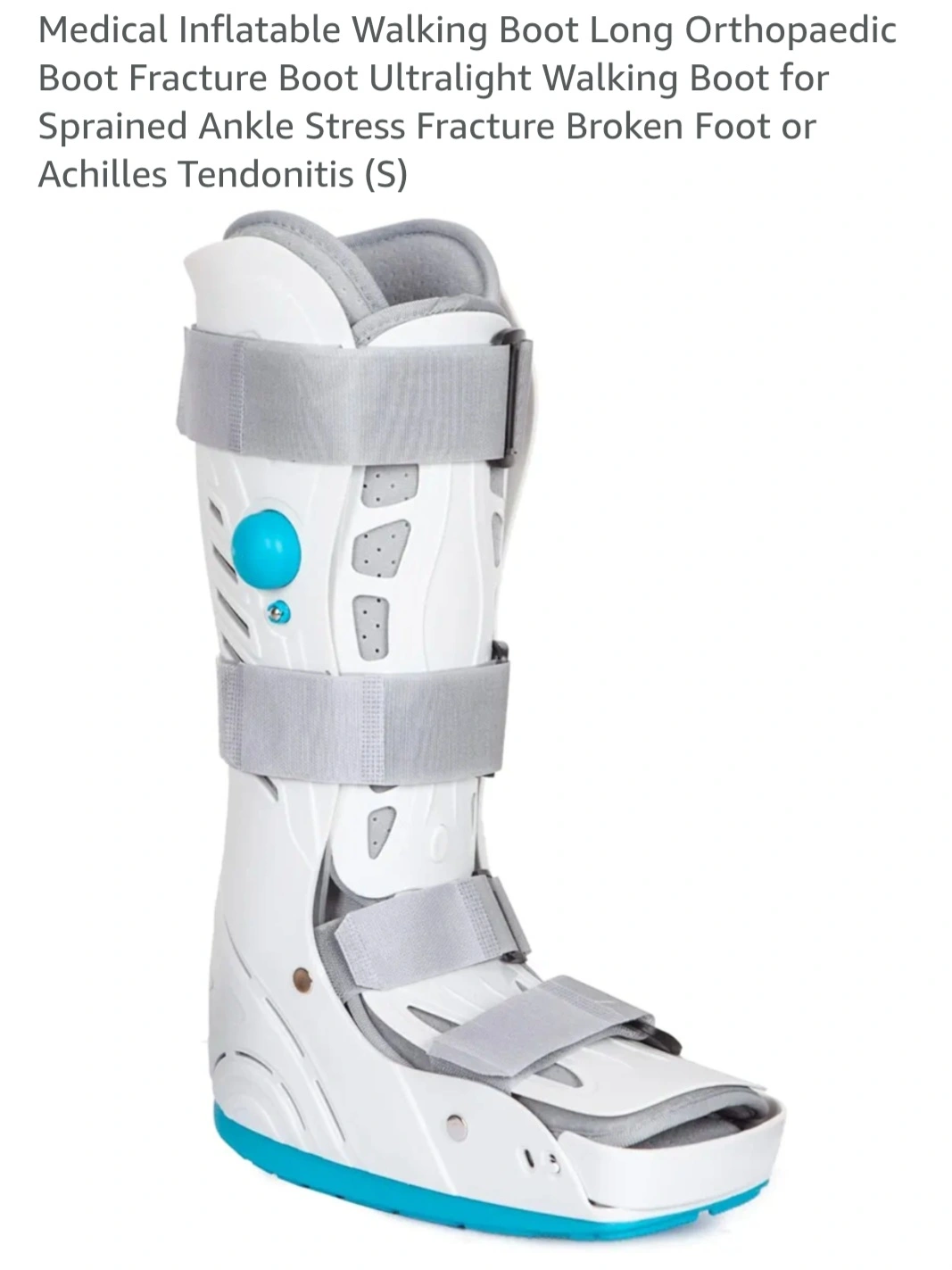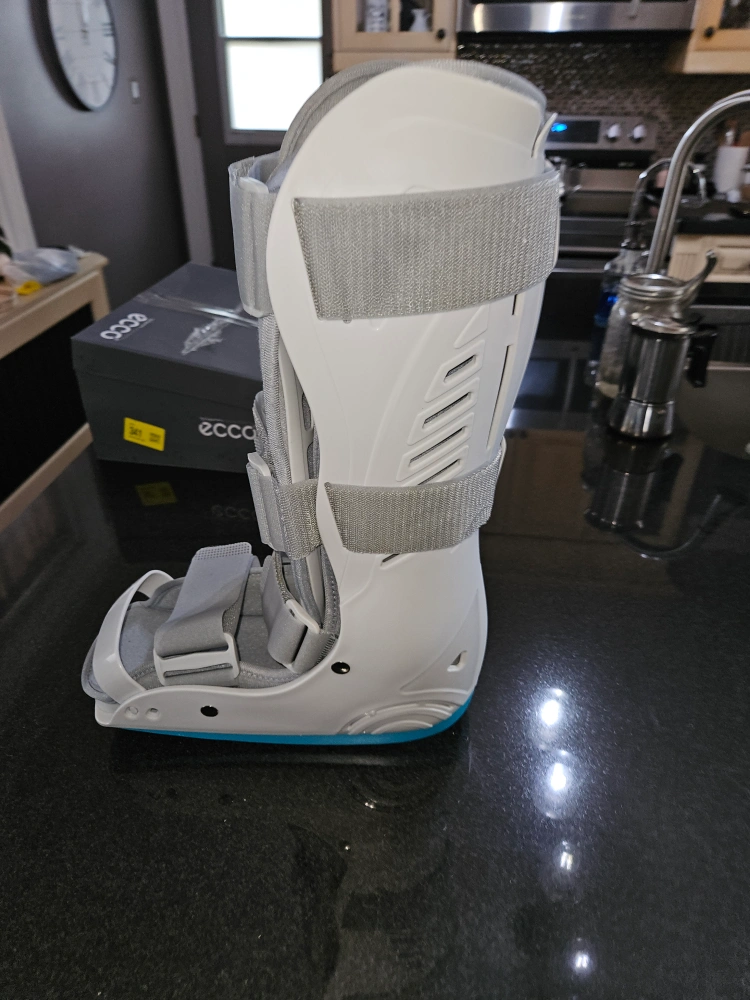 Medical inflatable walking boot for fractures or sprains. It's designed for comfort and support. This boot is a medium.