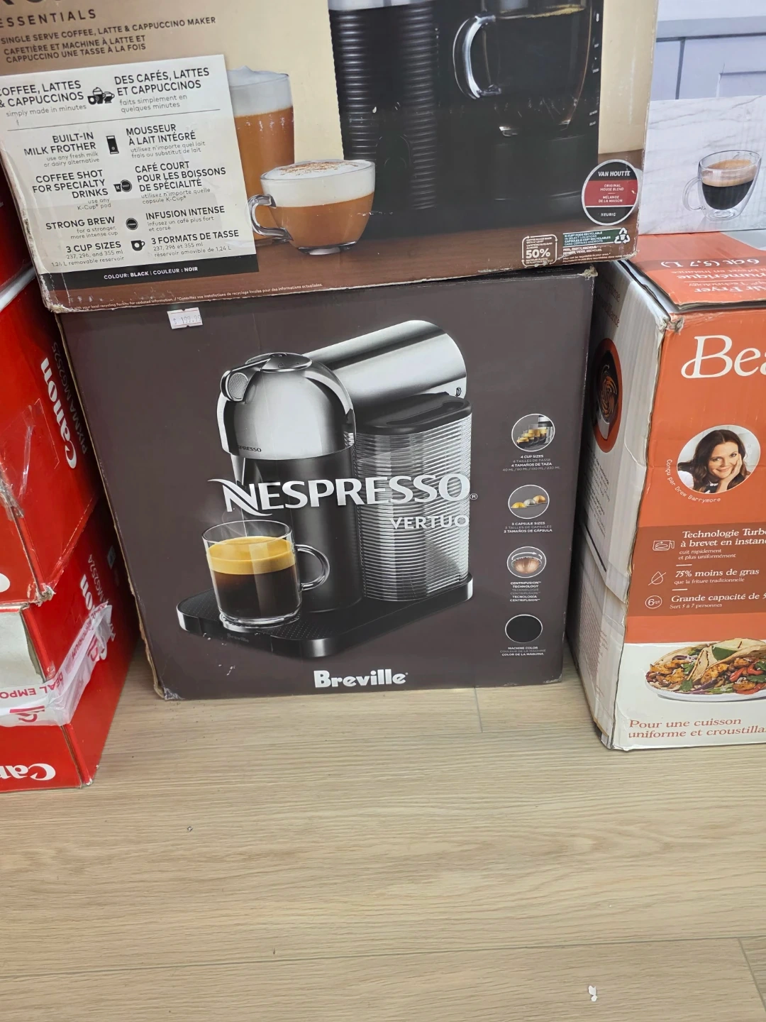 This Breville Nespresso Vertuo coffee maker makes single-serve coffee, lattes, and cappuccinos. It has a built-in milk frother and offers three cup sizes. The removable reservoir is 1.24L.