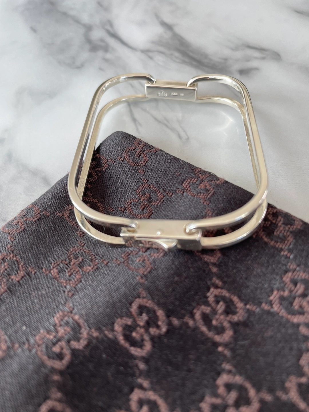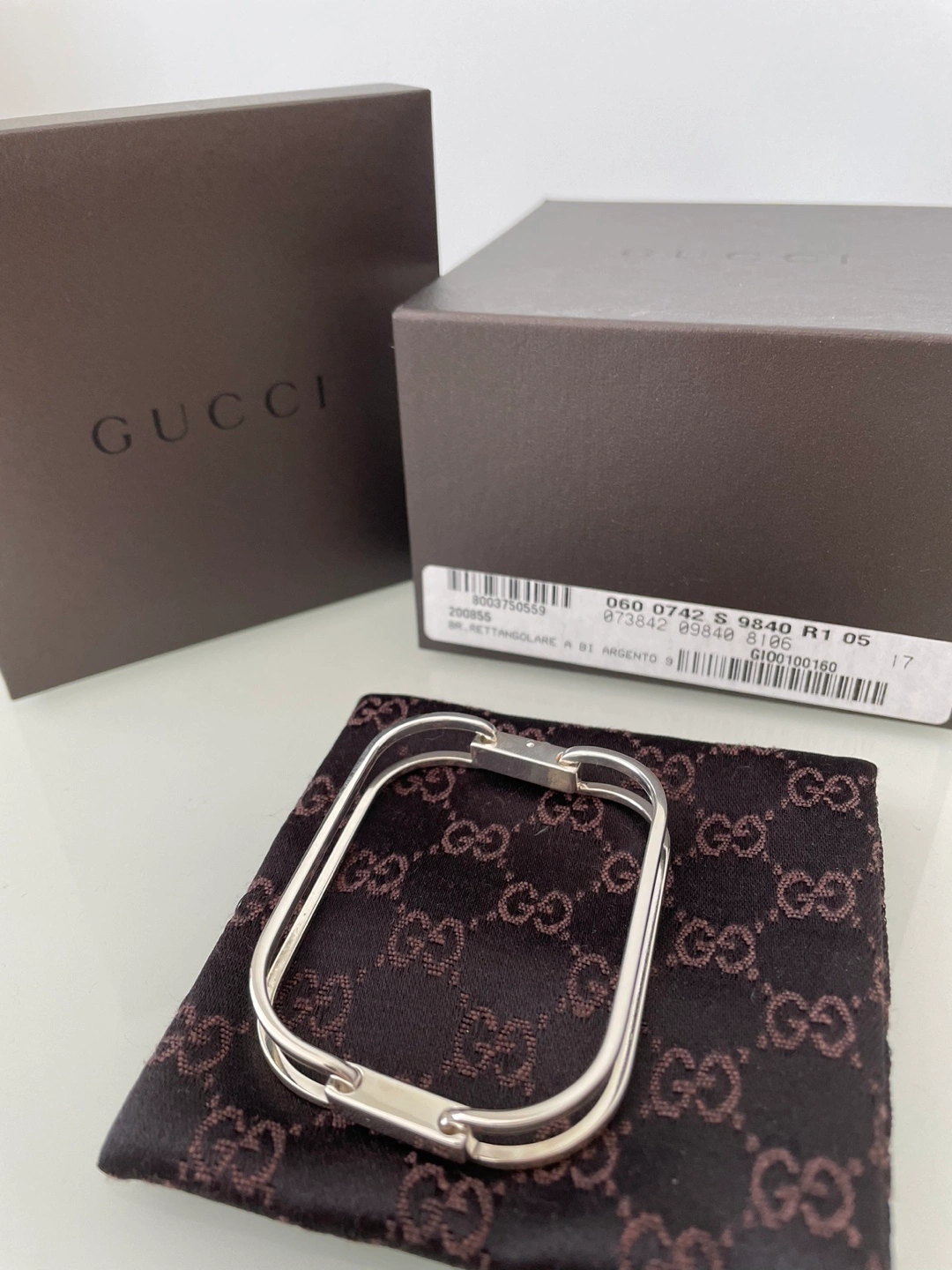 Gucci vintage sterling silver “rettangolare” bracelet. Clasp closure. Purchased in Italy. In perfect condition; still in original packaging.