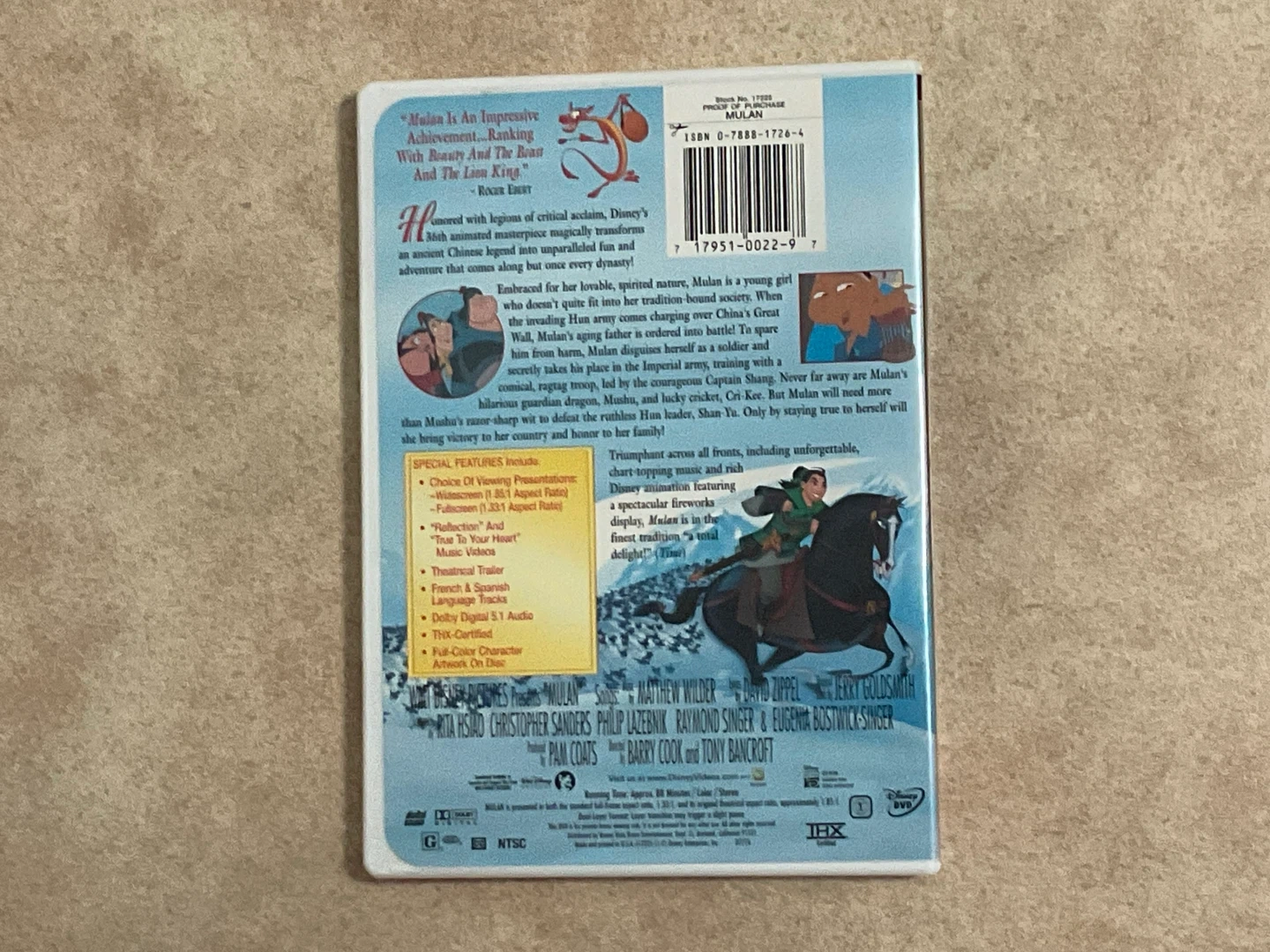 Selling a limited issue Walt Disney Mulan DVD! This DVD transforms an ancient Chinese legend into an adventure. It includes special features like deleted scenes, a theatrical trailer, and Dolby Digital 5.1 audio