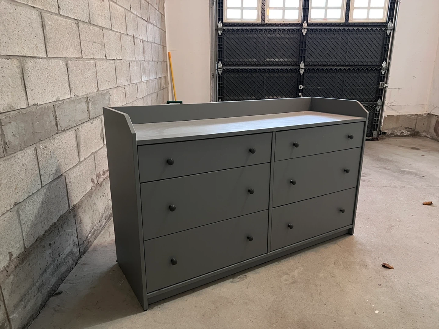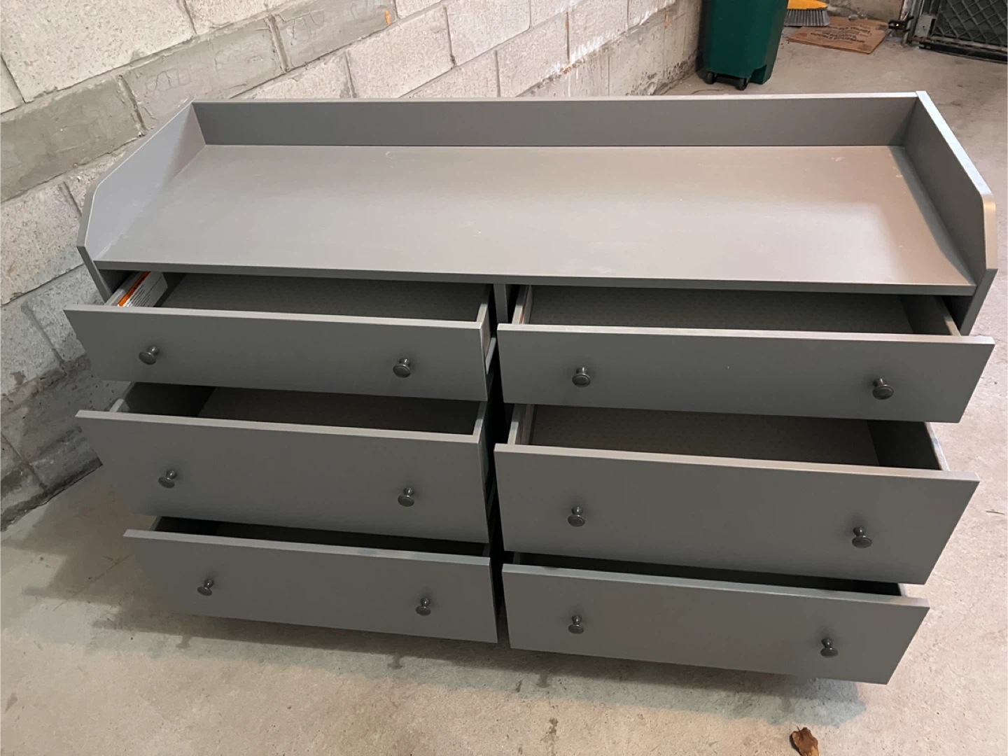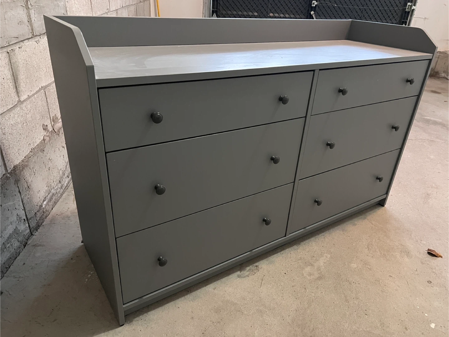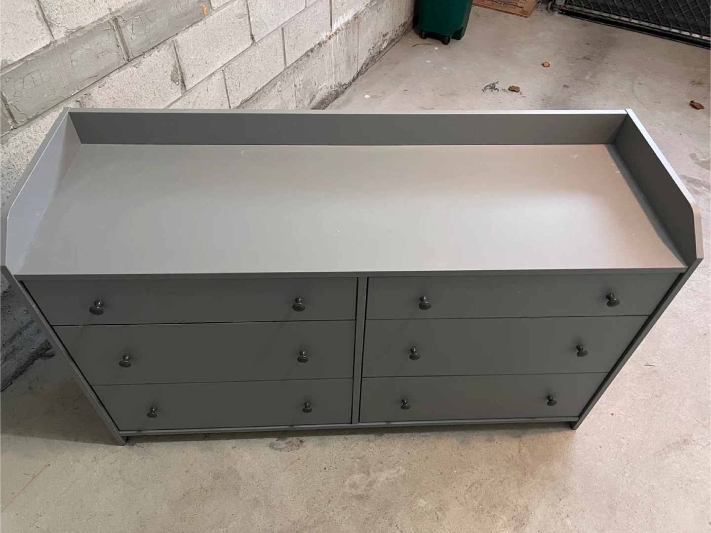 Here's a lovely grey dresser with six drawers! It's perfect for a kids room or as an extra storage solution. There's a bit of a scratch on the side, as you can see in the photos.