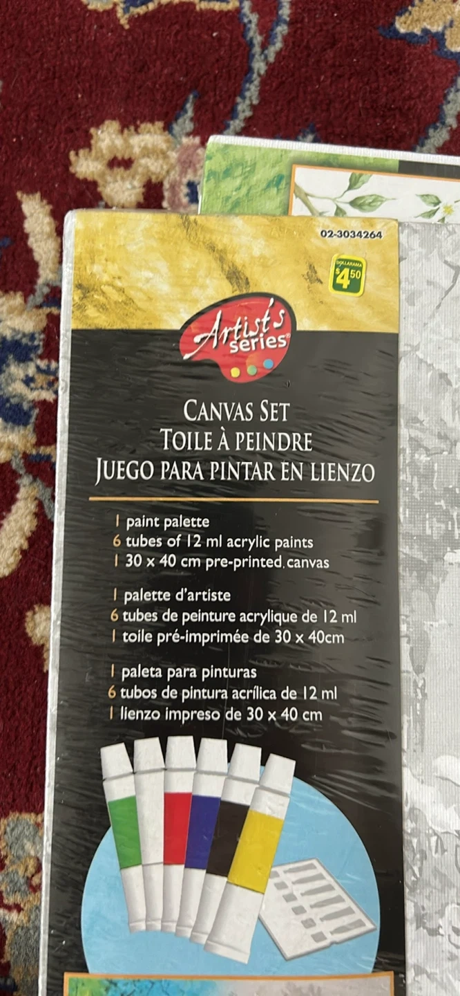 Includes multiple pre-printed canvases and acrylic paint tubes. Surface is medium-rough, suitable for acrylic and oil paints. Great for aspiring artists!