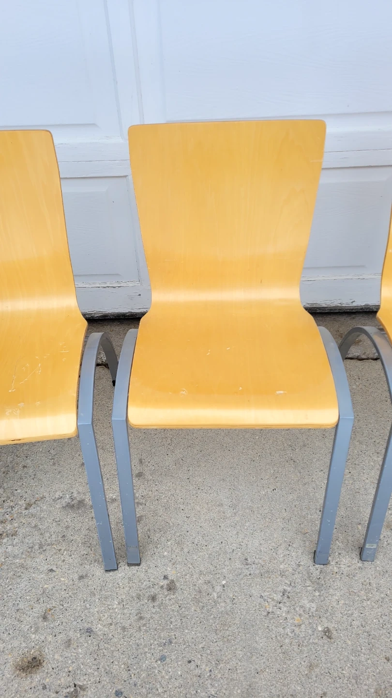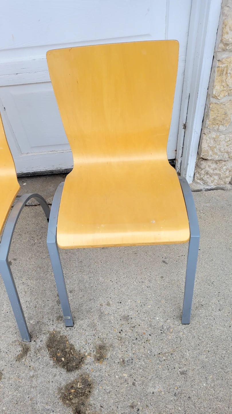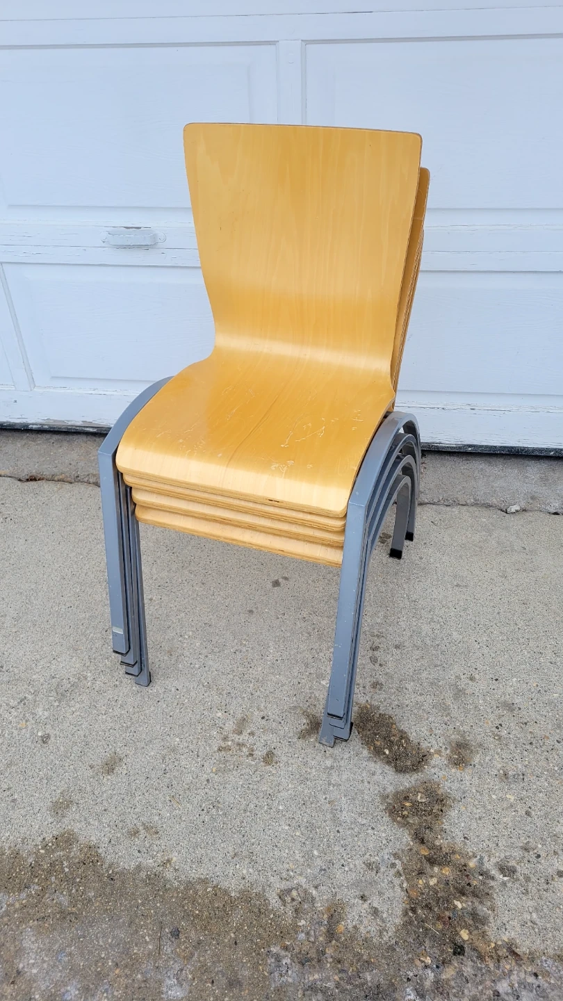 Comfortable, sturdy wood chairs. Can be stacked up for storage. Have some scuffs on the seats but otherwise in good condition. Pick up close to birds hill. Cash only.